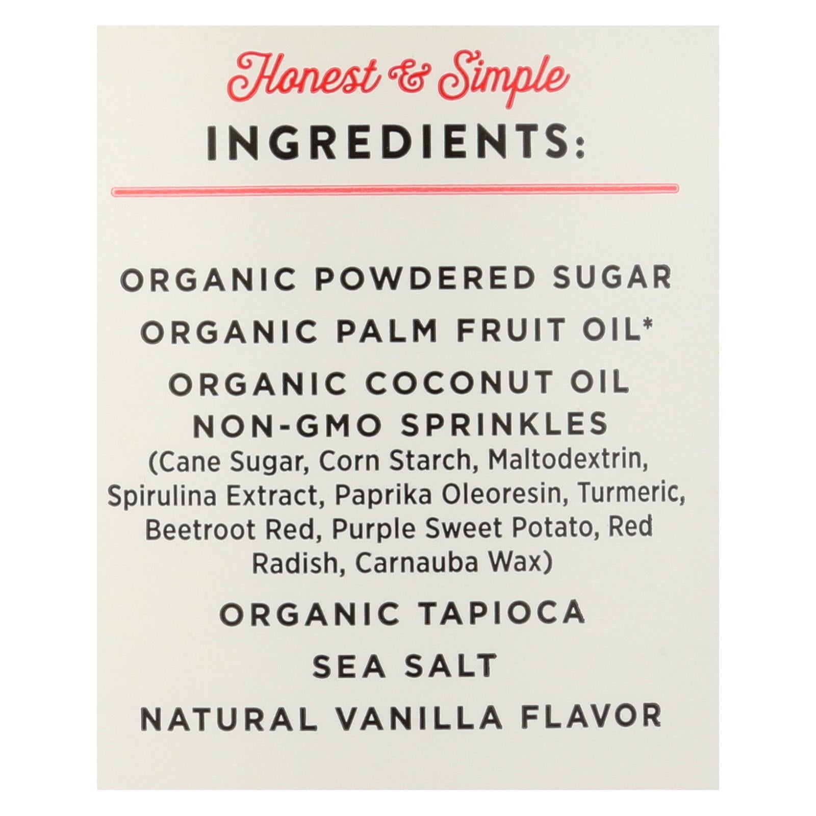 Delight in the vibrant and flavorful addition to your baked creations with this delightful frosting, crafted from organic ingredients. Made with a luscious blend of organic coconut oil and organic powdered sugar, this frosting is not only vegan but also gluten-free, ensuring it caters to a variety of dietary preferences. Perfect for enhancing cakes or pies, it adds a sweet and festive touch without any added trans fats or hydrogenated oils.