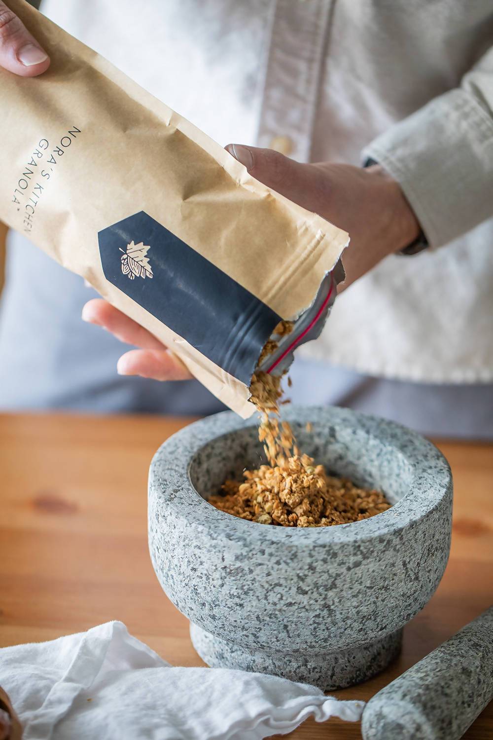 Nora’s Kitchen Granola is hand-crafted and produced in a licensed commercial kitchen in Portland, Oregon. It is slow-roasted in small batch production to bring out the unique flavor of healthy oils, nuts, grains, and spices.