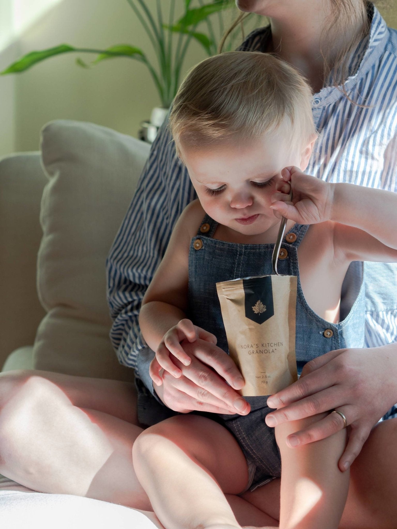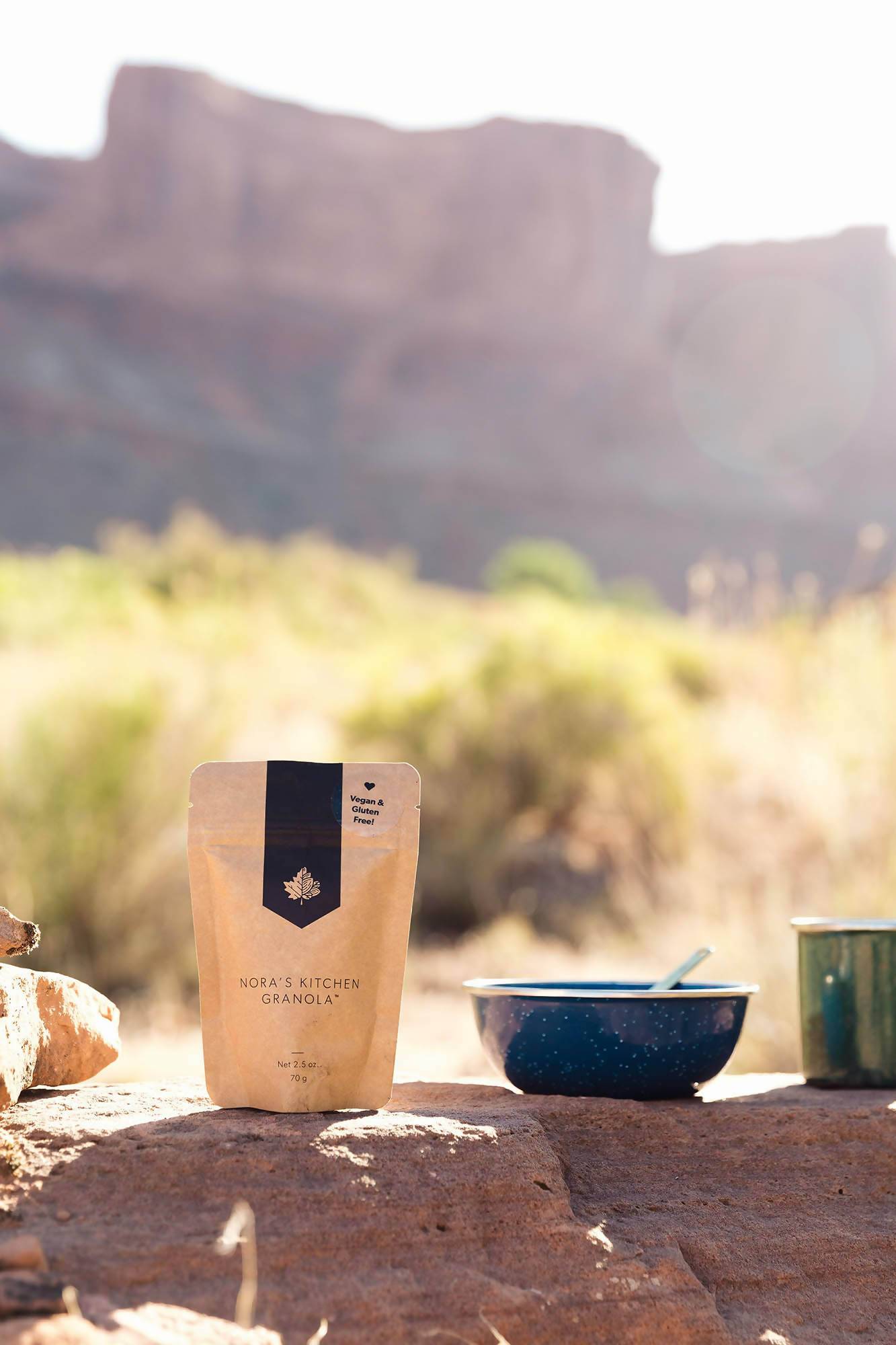 Nora’s Kitchen Granola, Vegan, Gluten-Free - what makes Nora's Granola stick out from the rest is our special food-grade packaging on our single-serving bags. We know everyone is on the move these days and we want to create an accessible way to eat healthier on the go. This will not only help you with your busy schedule but will accommodate the life you already live in a healthier way. Just grab a spoon and you are off! Whether your kids need a snack in the car on the way to school, you need an easier breakfast option on your camping trip, want a snack to keep on your desk, or need a heartier snack on the plane; we are here for you.