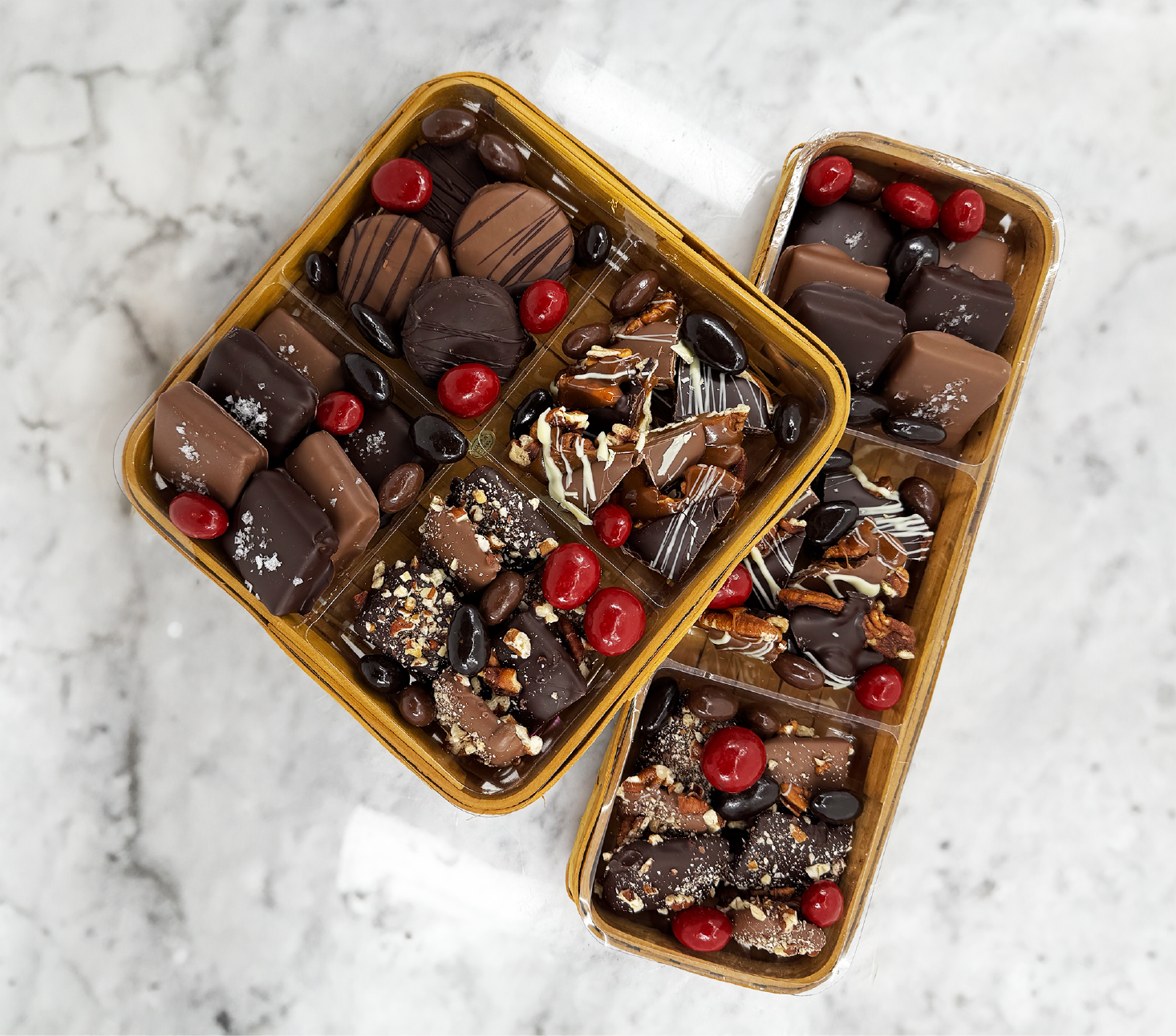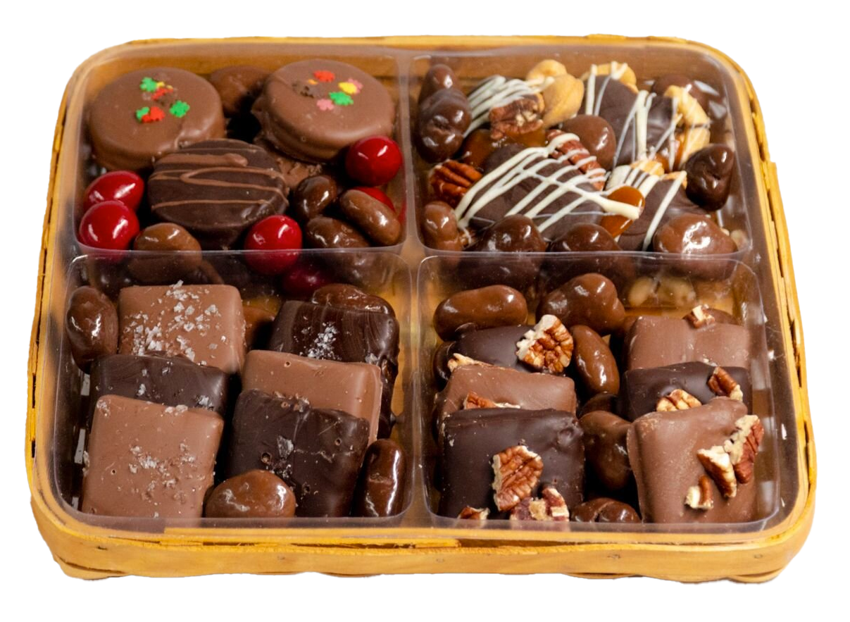 This North Star Sampler is the ultimate treat for any confection lover. It features a beautiful four section wicker basket filled with our hand-selected favorites, including Sea Salt Caramel, Pecan Toffee, and our Signature Loon Pies. Each basket also includes a seasonal variant, making it the perfect gift for any occasion. Satisfy your sweet tooth with this delightful assortment.