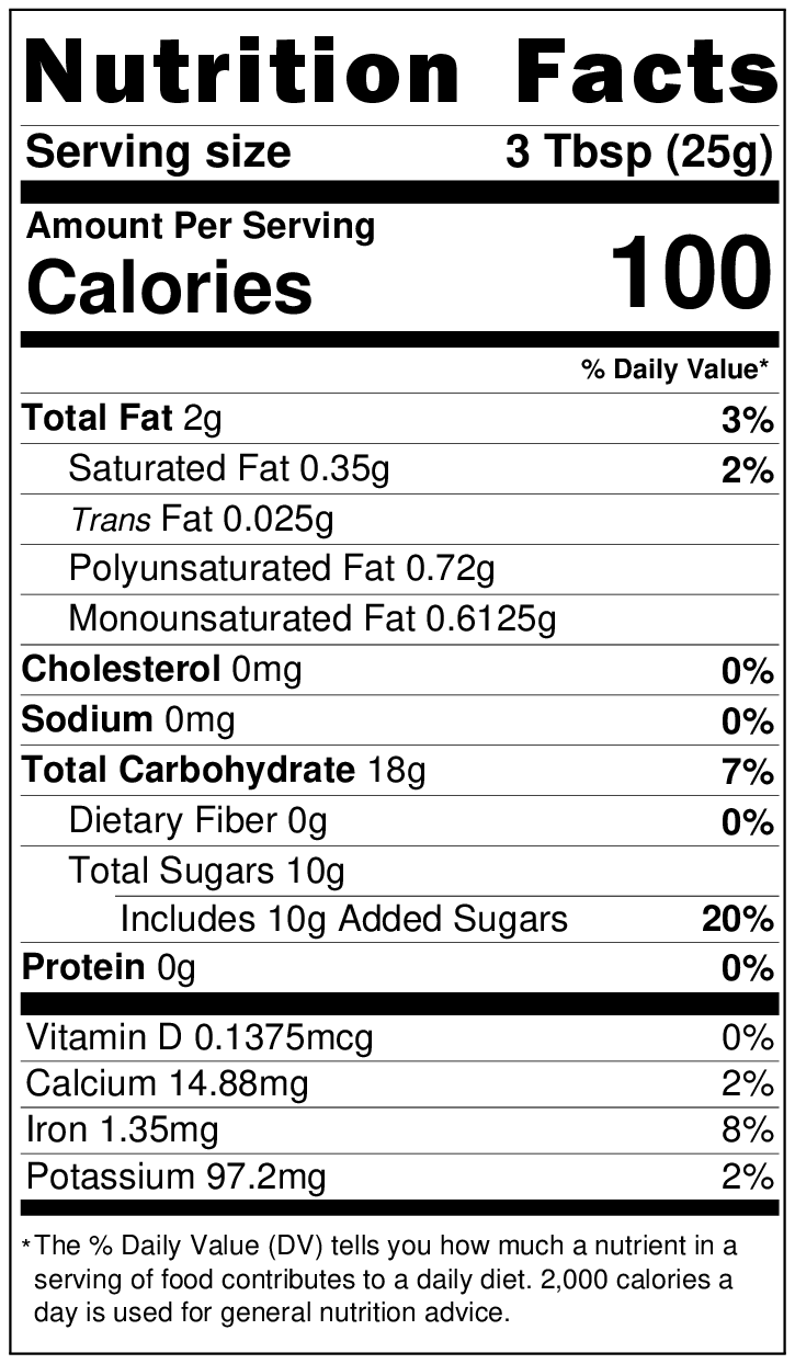 Allergen Statement: Product packed in a facility that also handles nuts, peanuts, soy, sesame, and wheat. 10 oz and 2 lb sizes only.