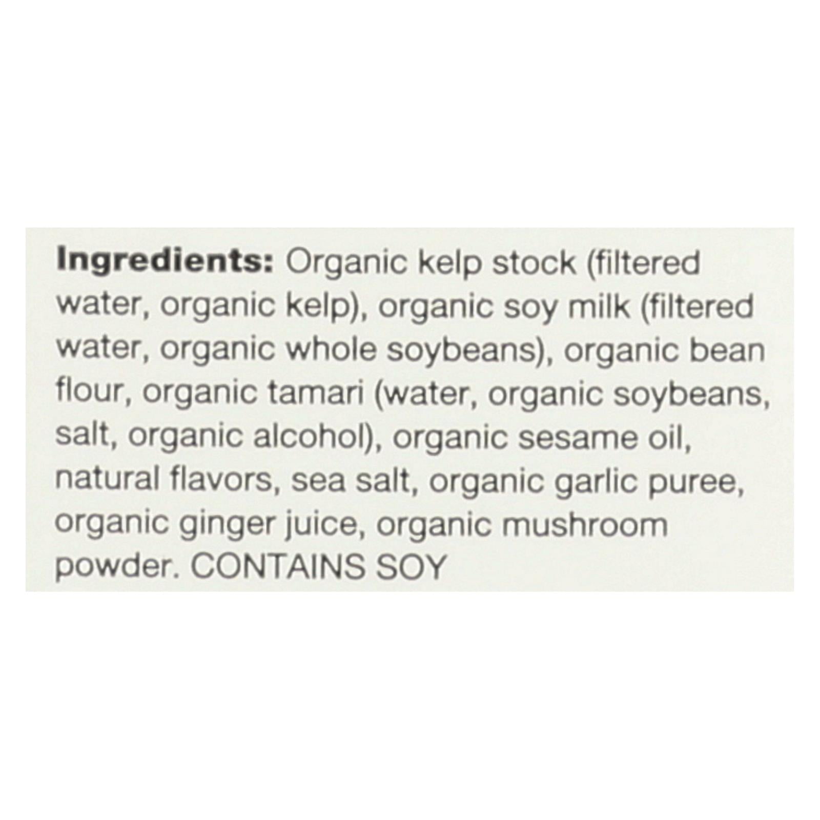 Savor the rich and savory taste of this organic ramen broth, perfect for crafting your favorite noodle soups. Containing 32 fl. oz. per carton and available in a case of six, this broth is a delightful blend of organic ingredients such as kelp stock, soy milk, sesame oil, and mushroom powder. It's not only a great source of vitamin D and iodine but also caters to diverse dietary needs.