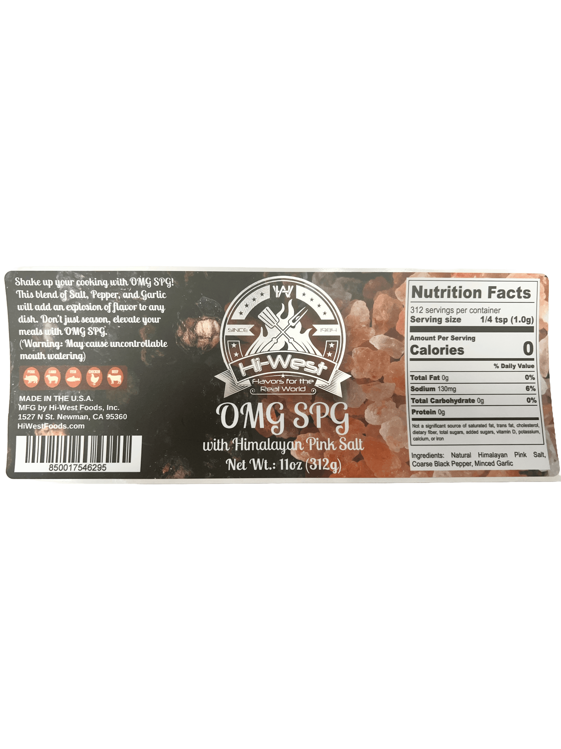Shake up your cooking with Hi-West OMG SPG! This blend of salt, pepper, and garlic will add an explosion of flavor to any dish. Don't just season, elevate your meals with Hi-West OMG SPG. (Warning: may cause uncontrollable mouth-watering.)