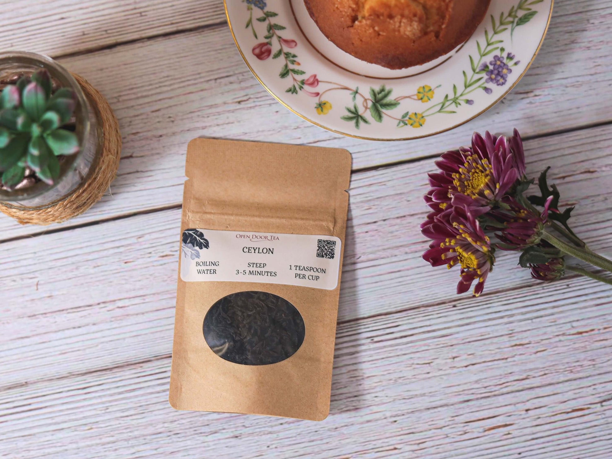 Open Door Tea Ceylon by Open Door Tea wholesale product delivery near me | | Fulfilled by our friends at Open Door TeaAbout Ceylon Tea:It so easy to get lost in the hustle and bustle of your day. Wake up with a sense of serenity every morning with this cup of Ceylon tea. It has an earthy, rich taste that is sure to give you just the burst of energy you need in order to take on whatever comes your way today. Plus, it tastes great when paired with milk or cream! This product belongs on any discerning tea drinker table as a part of their routine morning or midday rituals.Slightly brighter and crisper than Assam tea, it has a lovely smooth finish. Ceylon teas are grown at high altitudes giving way to slightly subtler flavors, with a lighter amber liquor. You may find citrus or mentholated notes in this black, "breakfast" tea.Ingredients:Organic Black TeaOrigin:Sri LankaQuantity:Sample Pouch: 2-4 Cups1.5 Ounce Tube: 15-19 Cups8 Ounce Bulk Pouch: 80-100 Cups