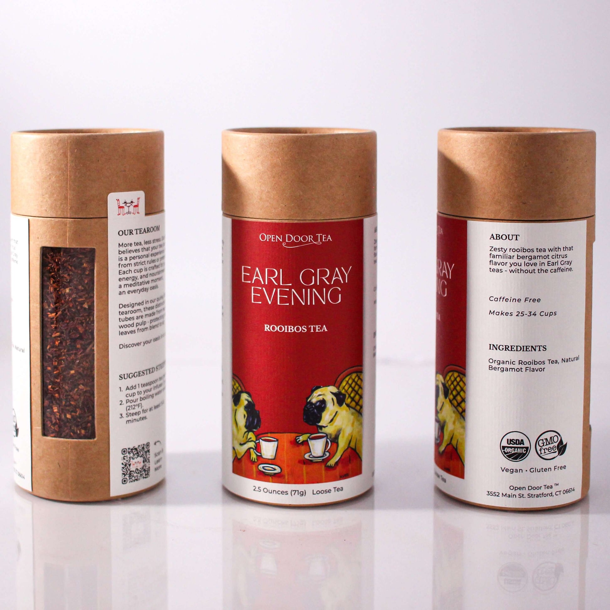 Open Door Tea Earl Gray Evening by Open Door Tea wholesale product delivery near me | | Fulfilled by our friends at Open Door TeaAbout Earl Grey Red:Zesty red tea with overtones of bergamot, the signature flavor of Earl Grey tea (Formerly named Earl Gray Red).Ingredients:Organic Rooibos Tea, Natural Bergamot FlavorOrigin:South AfricaQuantity:Sample Pouch: 2-4 Cups2.5 Ounce Tube: 25-32 Cups8 Ounce Pouch: 80-100 Cups