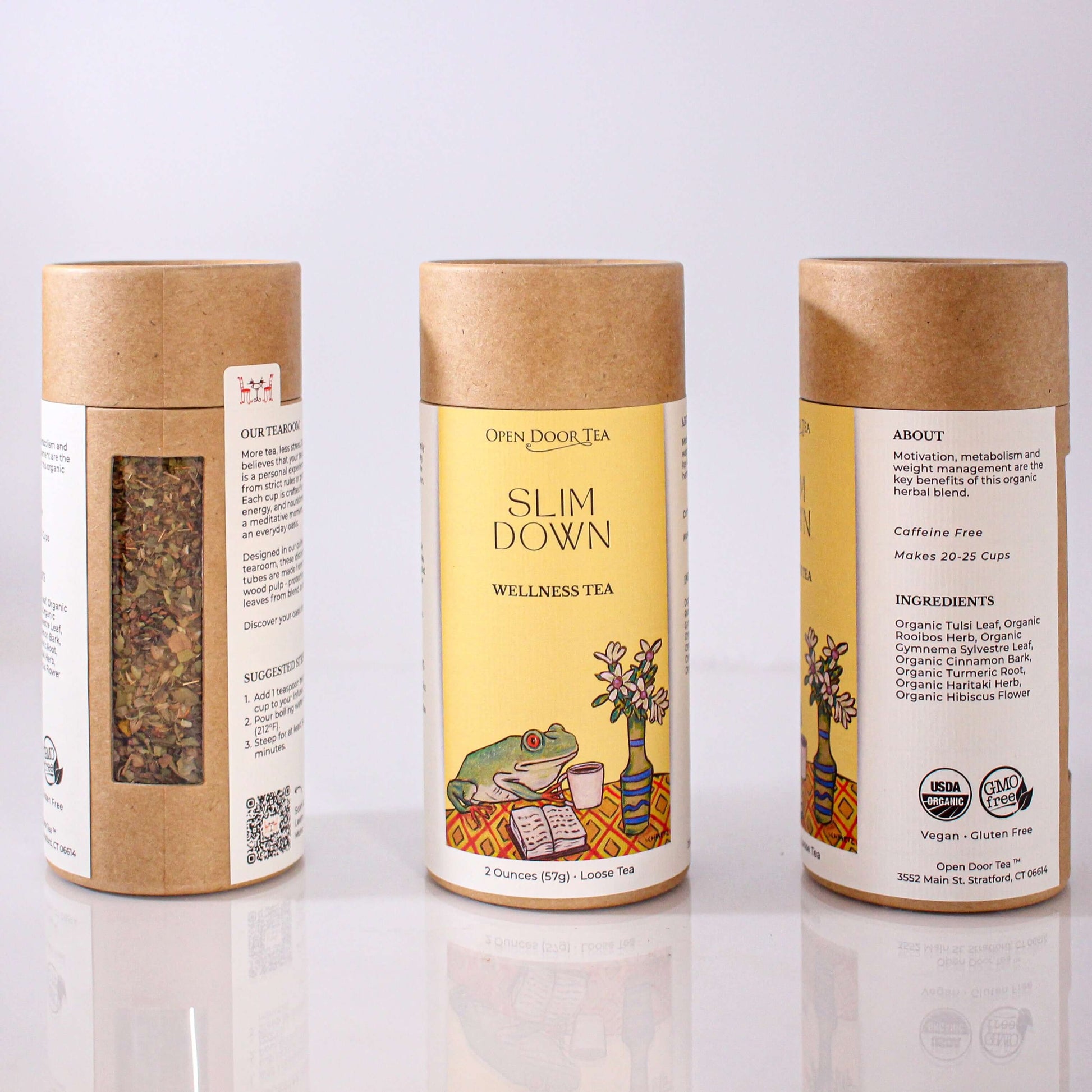 Open Door Tea Slim Down by Open Door Tea wholesale product delivery near me | | Fulfilled by our friends at Open Door TeaAbout Ayurvedic Tea:Adaptogenic herbal infusions that promote “balance between the mind, body and spirit”, these blends are based on the five elements of Ayurveda belief: Ether, Air, Fire, Water and Earth.About Slim Down:Motivation, metabolism, and weight management are the key benefits of this organic herbal blend. These functional herbs are known to speed up the metabolism and decrease appetite, which can in turn help lose weight. It is specifically formulated to aid your weight loss journey, although you will receive a variety of other benefits from these herbs as well!Ingredients:Organic Tulsi Leaf, Organic Rooibos Herb, Organic Gymnema Sylvestre Leaf, Organic Cinnamon Bark, Organic Turmeric Root, Organic Haritaki Herb, Organic Hibiscus FlowerOrigin:IndiaQuantity:Sample Pouch: 2-4 Cups2 Ounce Tube: 20-25 Cups8 Ounce Bulk Pouch: 80-100 CupsSuggested ..