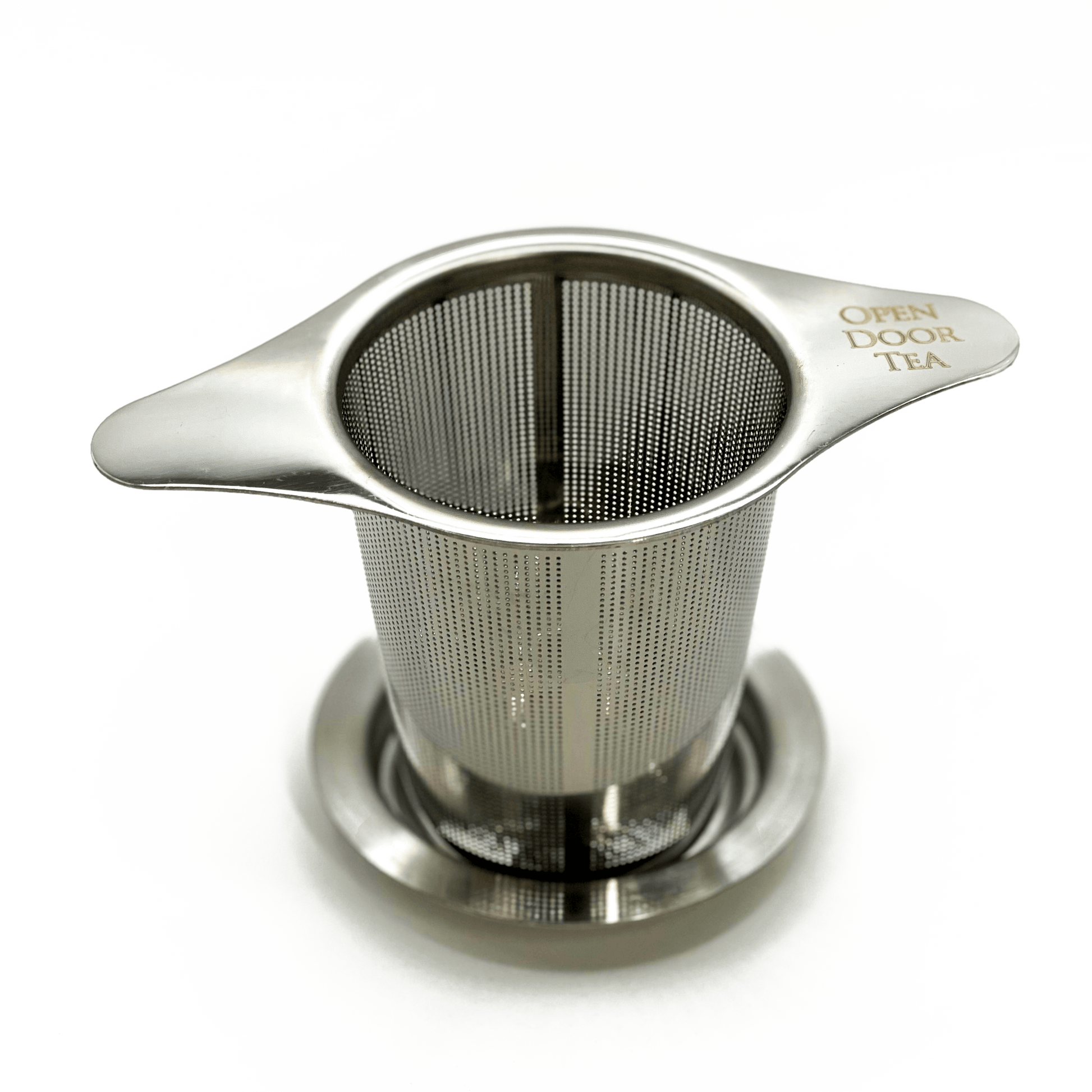 Open Door Tea Steel Tea Infuser by Open Door Tea wholesale product delivery near me | | Fulfilled by our friends at Open Door TeaThe Universal Infuser:A great steeper works as a tea bag replacement, allowing you to steep loose-leaf tea easily. This infuser has two handles that fit in most mugs, glasses, teapots or jugs. It also comes with a top to keep the water hot while you steep, and rest the infuser on after steeping to prevent drips or leaking. The basket is big enough that you can fit enough tea for 6-8 cups, or as little as 1 cup, making it a versatile and efficient way to steep loose tea.INSTRUCTIONS:Place infuser into mug or cup, resting handles on the brim.Put loose tea into infuser. Portion as needed, start with 1 teaspoon per 4oz if you are not sure.Pour hot water over tea until the water line is near the top of the basket.Place lid on top, and steep as long as needed.After steeping, remove the lid and place it on the table.Slowly remove infuser from your cup ..
