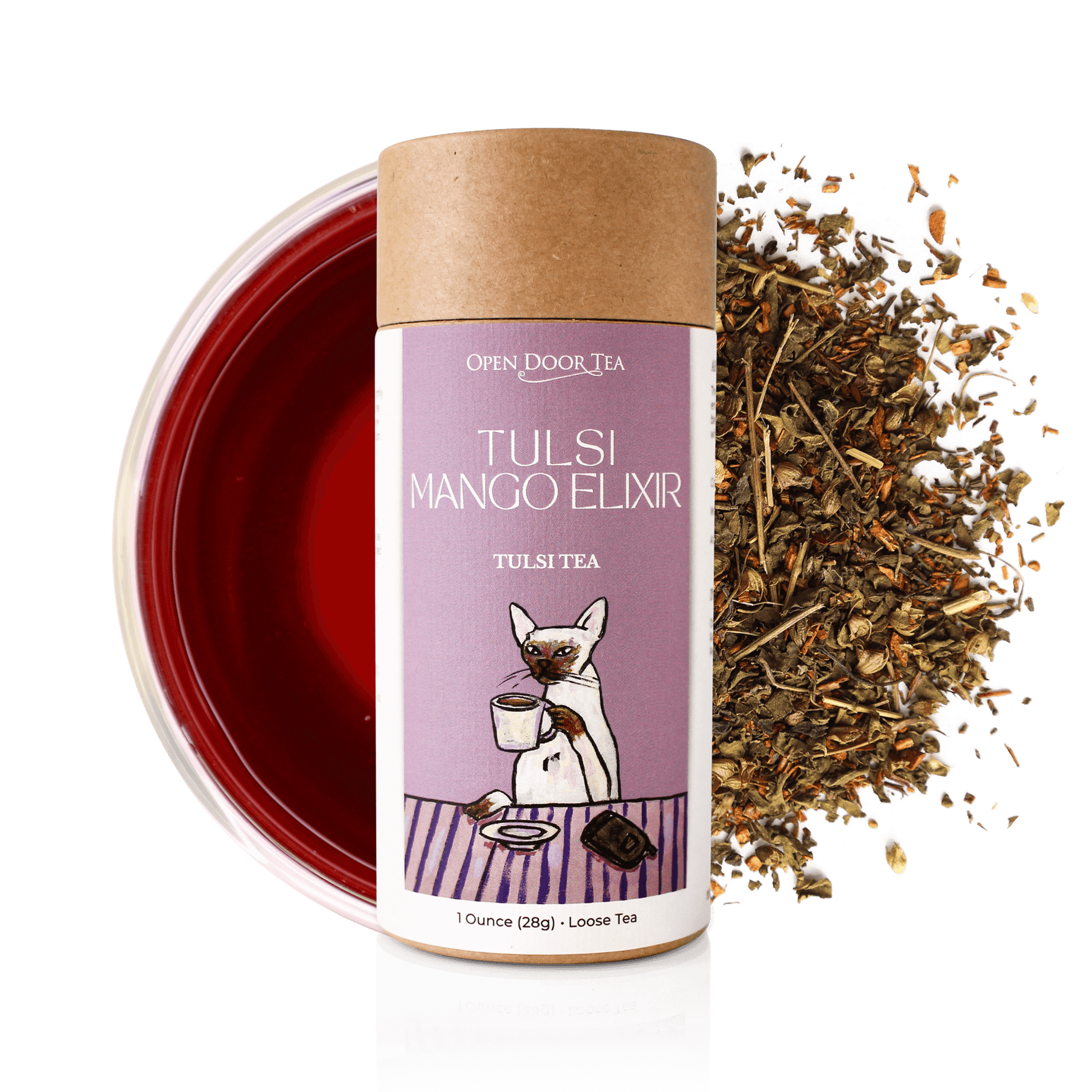 Open Door Tea Tulsi Mango Elixir by Open Door Tea wholesale product delivery near me | | Fulfilled by our friends at Open Door TeaAbout Tulsi Mango Elixir:The perfect tea to relax and enlighten your mind, this tulsi blend is highly nutritional with hints of mango and hibiscus.Description:This blend is the fruity answer to de-stressing. Who said that medicine couldn’t taste great? This sweet and flavorful concoction is our bright spin on a 5,000 year old mystical herb. Tulsi has been worshiped for centuries across the Indian subcontinent. This is a blend of three varieties of Tulsi: Krishna, Rama, and Vana. High mineral and antioxidant content make this herb act as an adaptogen, a natural substance considered to help the body adapt to stress and to exert a normalizing effect upon bodily processes. Another well-known example is ginseng.Studies have proven it to be a powerful anti-inflammatory, and immune system modulator, as well as an optimistic treatment for conditions su..