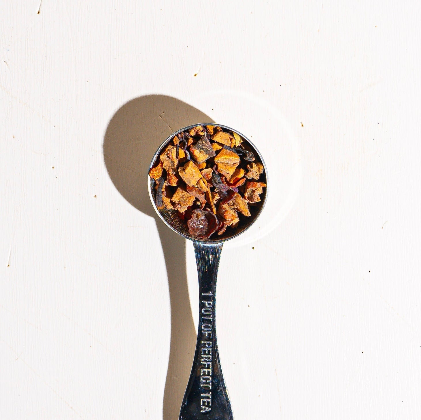 Luxury Ingredients: Apple + Hibiscus + Rosehip + Cinnamon pieces, Cardamom, Ginger, Black + White pepper, Cinnamon, Clove, Nutmeg.