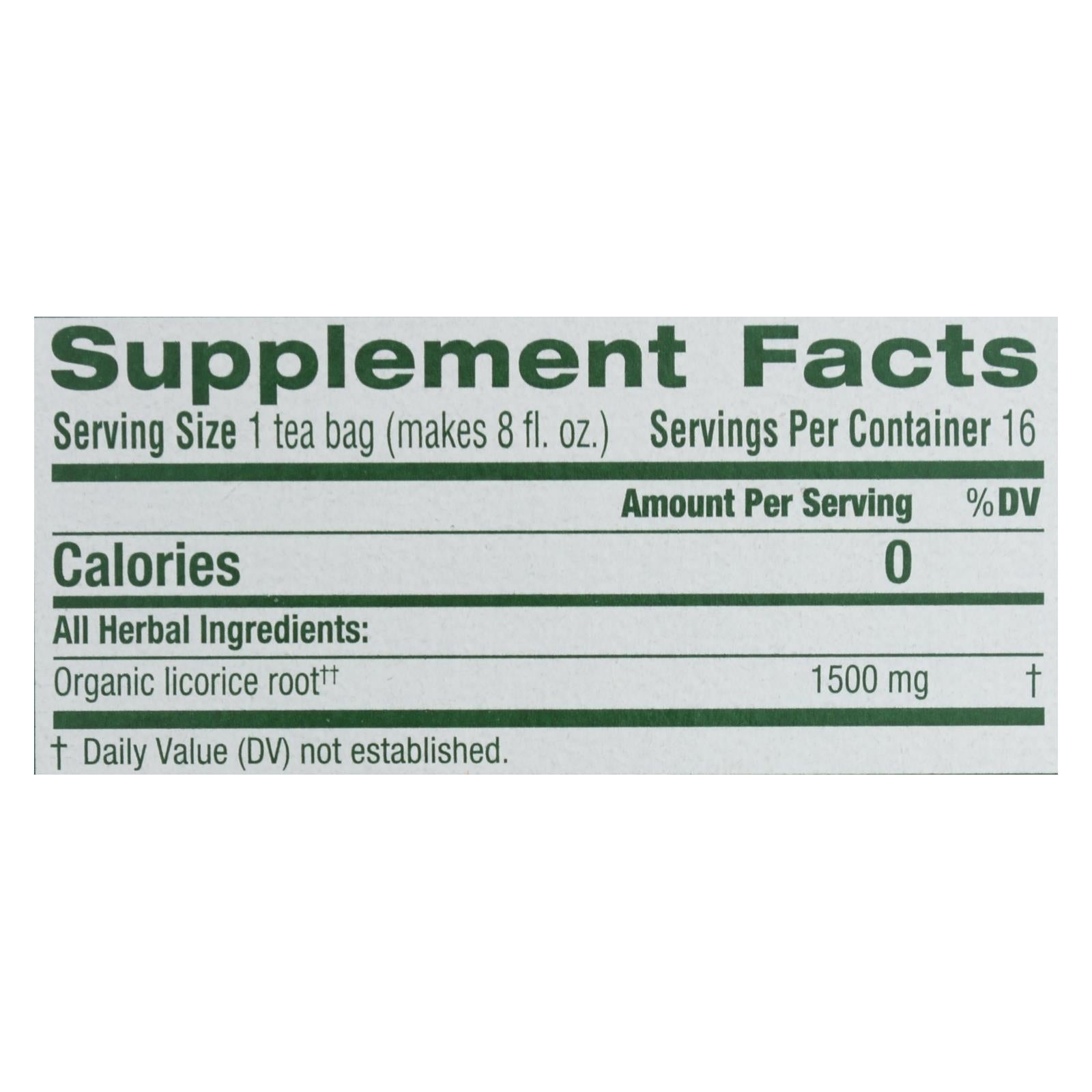 Organic Licorice Root Herbal Tea - 16 Bags, Case of 6