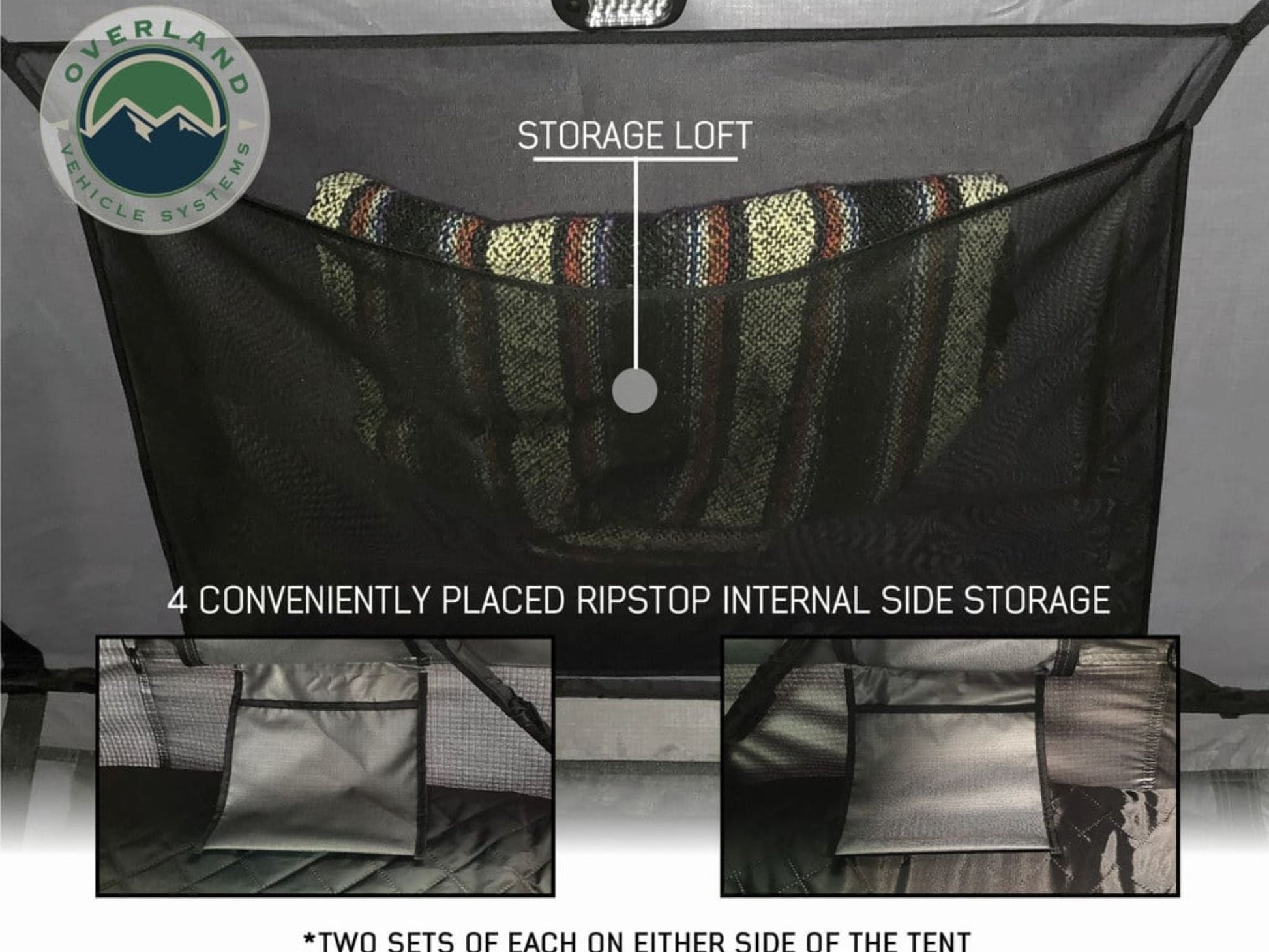 Introducing the Overland Vehicle Systems Nomadic 4, four person, soft shell, Roof Top Tent, designed for the adventurous souls seeking ultimate comfort and durability. Crafted with the finest materials, this tent features a heavy-duty double insulated one-piece diamond plated base, ensuring long-lasting performance. Its marine-grade stainless steel hinges and hardware guarantee sturdy assembly. With enough room to sleep four and not be cramped this rooftop tent is a great option for families or friends!