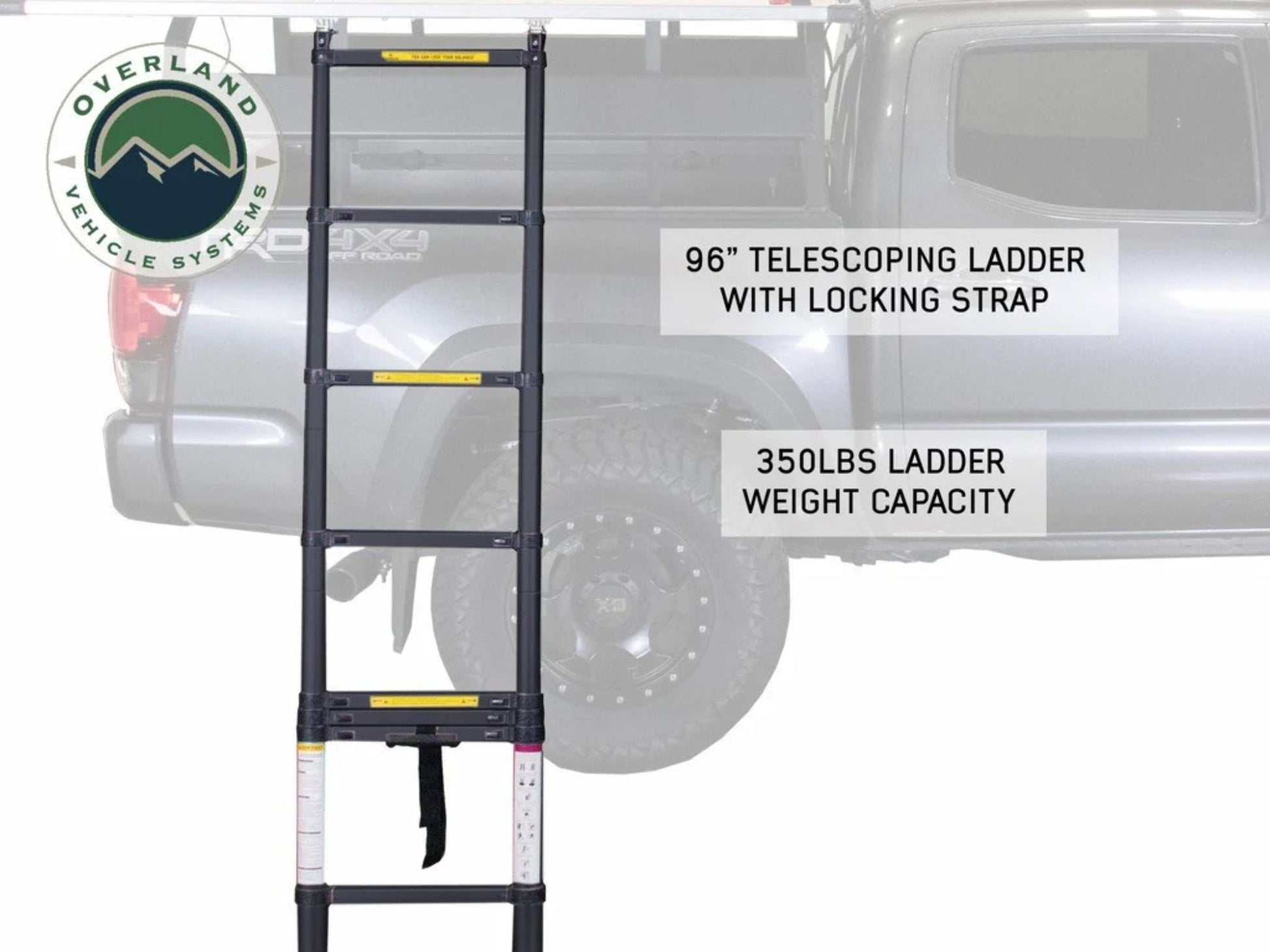 -Ladder: 96” Telescoping Ladder with locking Strap Steel Double Sheer Attachment Hinges