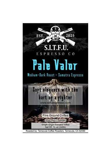 Pale Valor Sumatra a MED-DARK roast. Dark Chocolate, Earthy, Lingering Finish, Medium Acidity, Full Body. A Soft elegance with the hart of a fighter.
