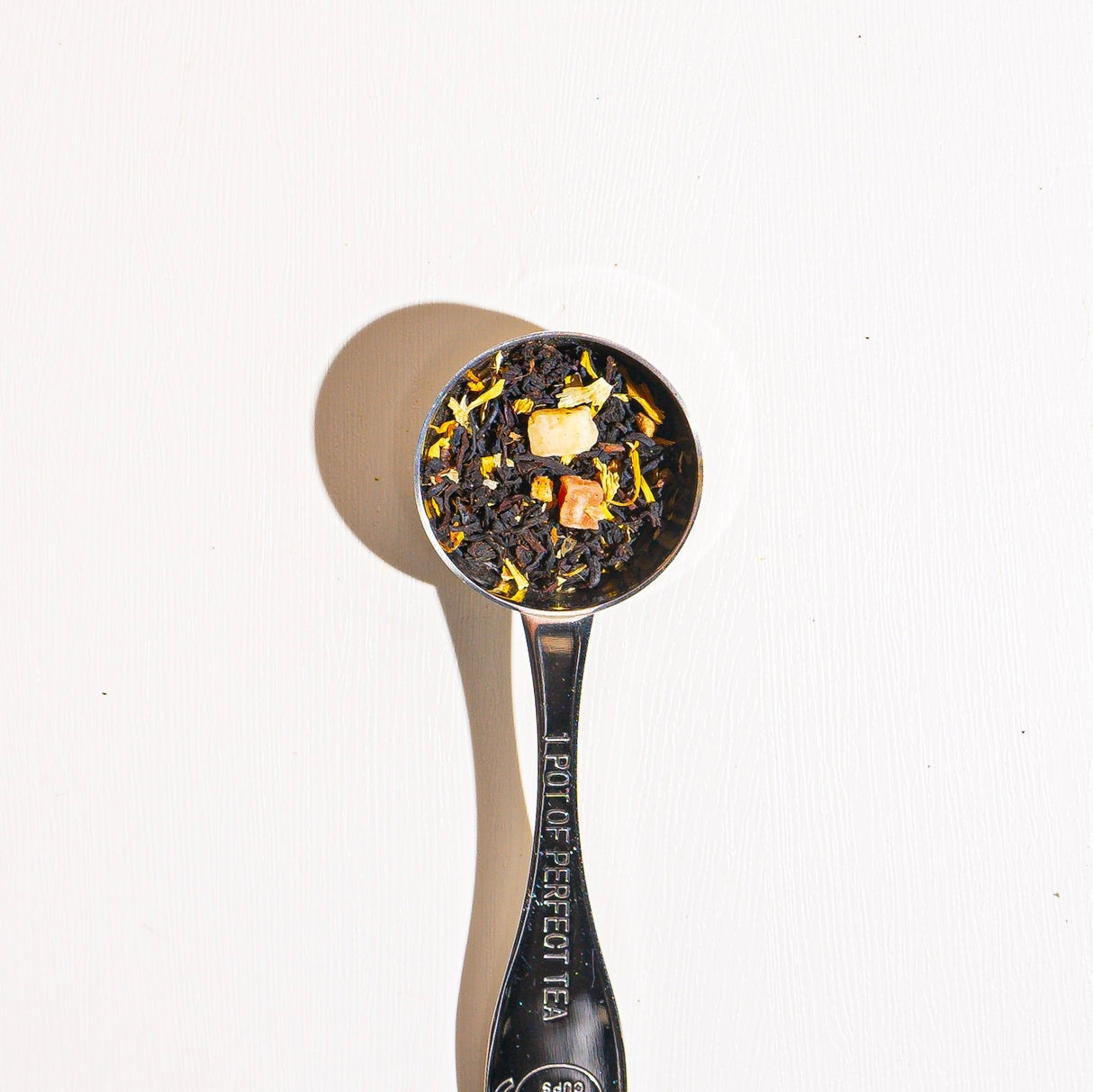 Luxury Ingredients: Black tea, Papaya pieces, Blackberry leaves, Apricot, Peach pieces, Calendula, Sunflower petals, Natural flavors (Organic Compliant).