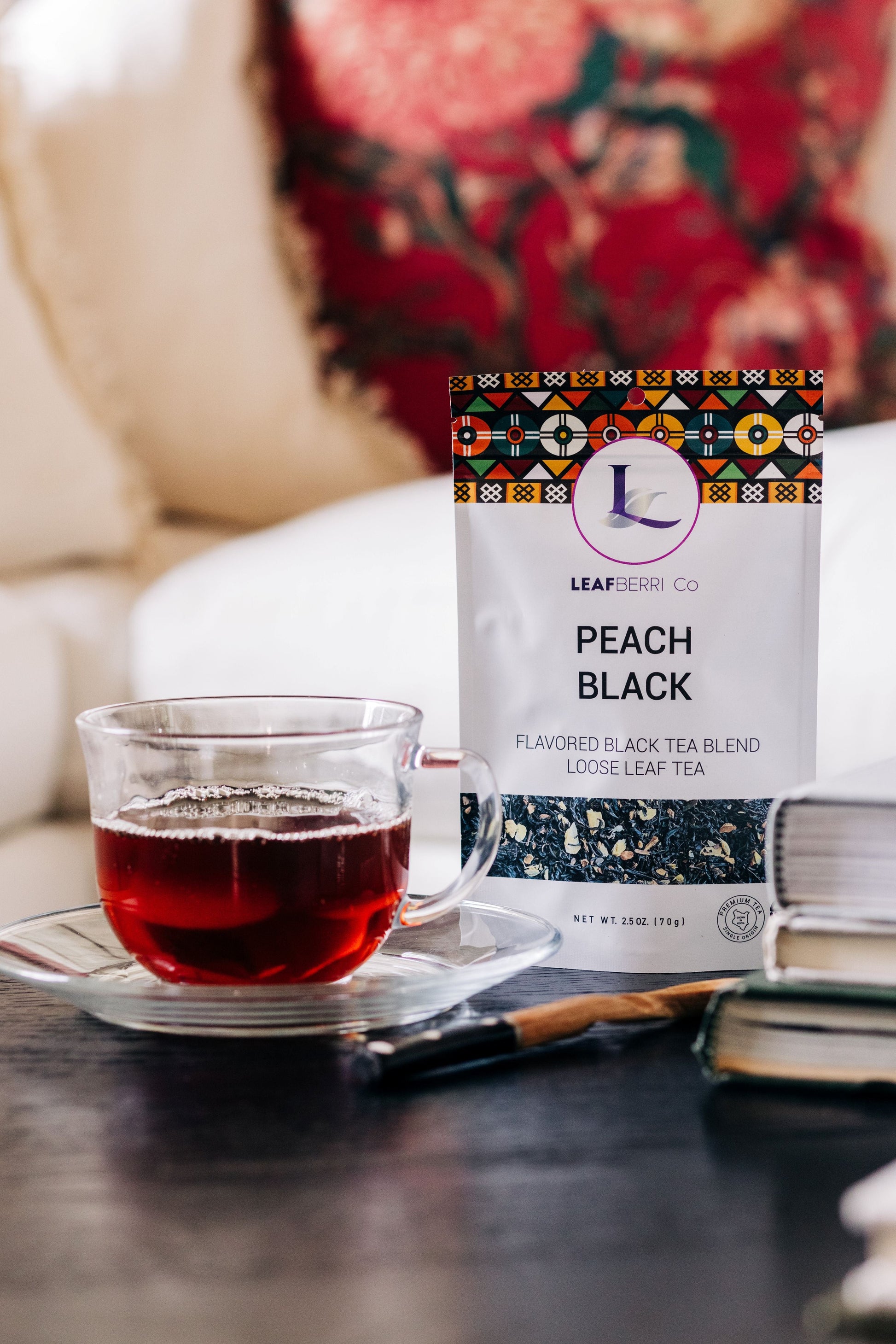 A delicious blend of peach flavors and our robust award winning Kenyan black tea perfectly blended with aromatic herbs. Tastes like peach cobbler in your tea cup! Sweeten if desired.