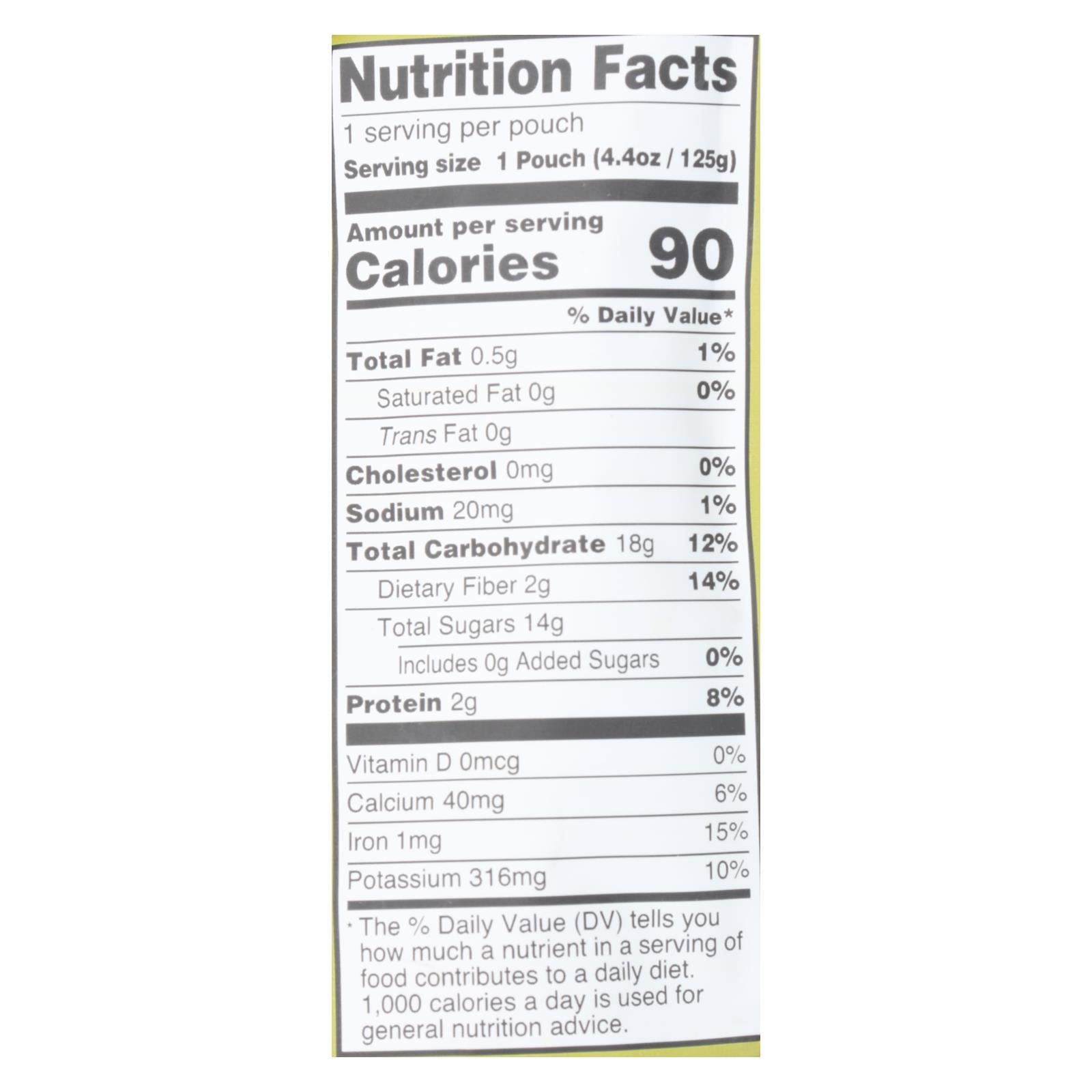 Satisfy your cravings with a wholesome snack that combines the goodness of kale, broccoli, and mango with the sweet touch of banana. Each 4.4 oz. pouch is USDA organic certified, ensuring you're enjoying a snack made from pure vegetables and fruits without any added salt, sugar, or water. Packed with essential nutrients, this snack provides: