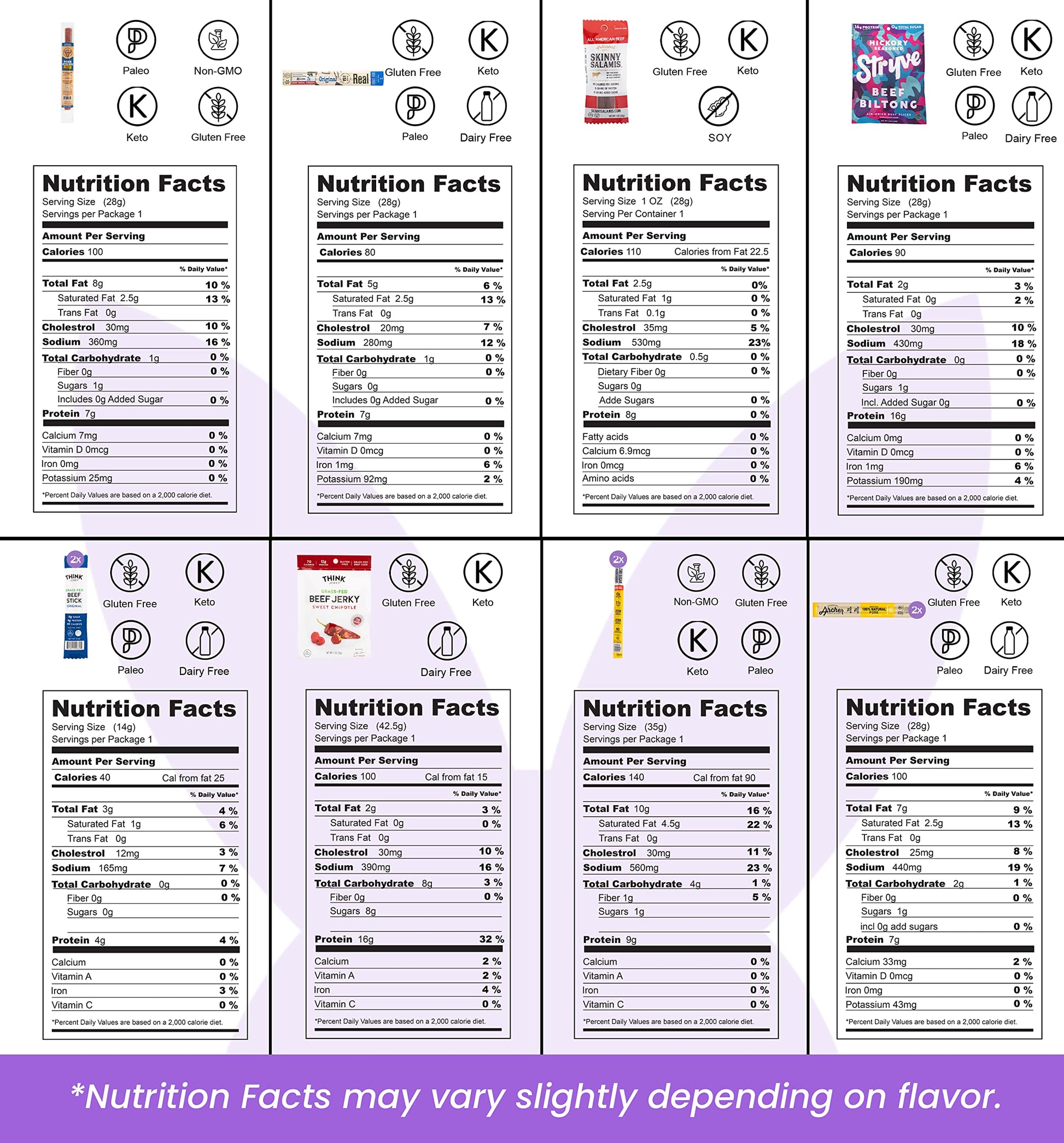 Taste the Difference: Each jerky is slow-cured using traditional methods and premium spices. From the sweet and savory teriyaki to the fiery kick of our sriracha blend, every bite delivers restaurant-quality flavor in a convenient, portable format.