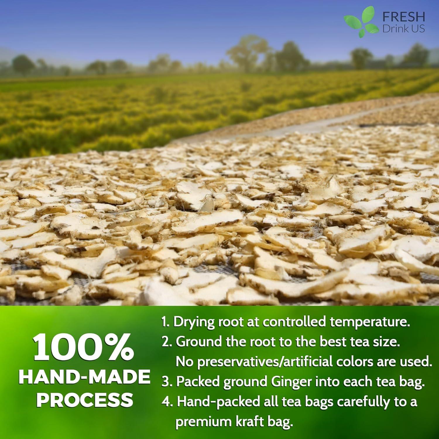 - ☘️ ALL NATURAL GINGER TEA BAGS: Made of 100% Natural Ginger. We follow strict international standards with No Pesticides or Herbicides used on the Ginger. Ensure unsurpassed quality for our customers. That's Our Promise. From Our Natural Farm to Your Cups!