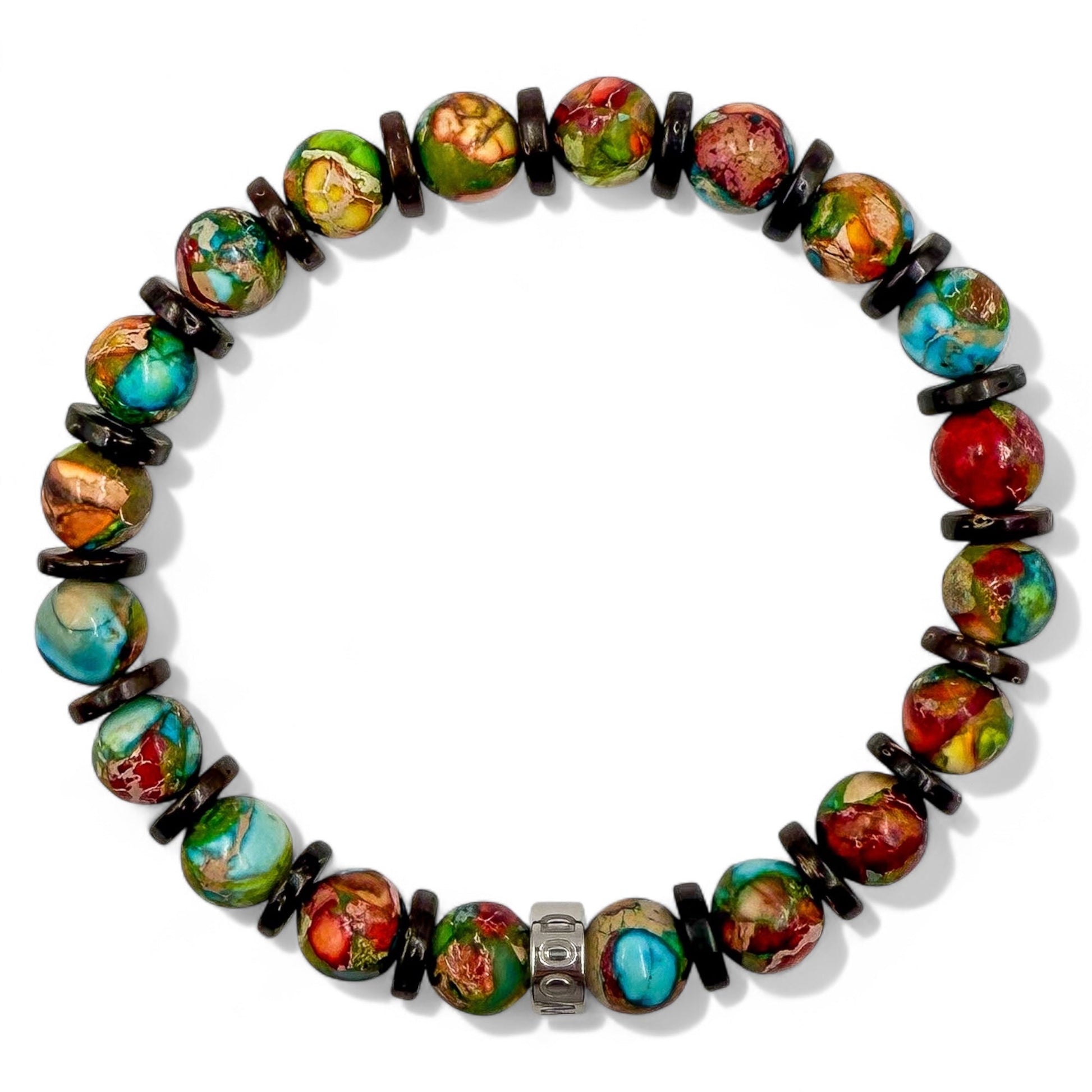- Premium 8mm Rainbow Jasper and Brown Coconut Beads: Carefully selected for their distinctive texture and durability.
