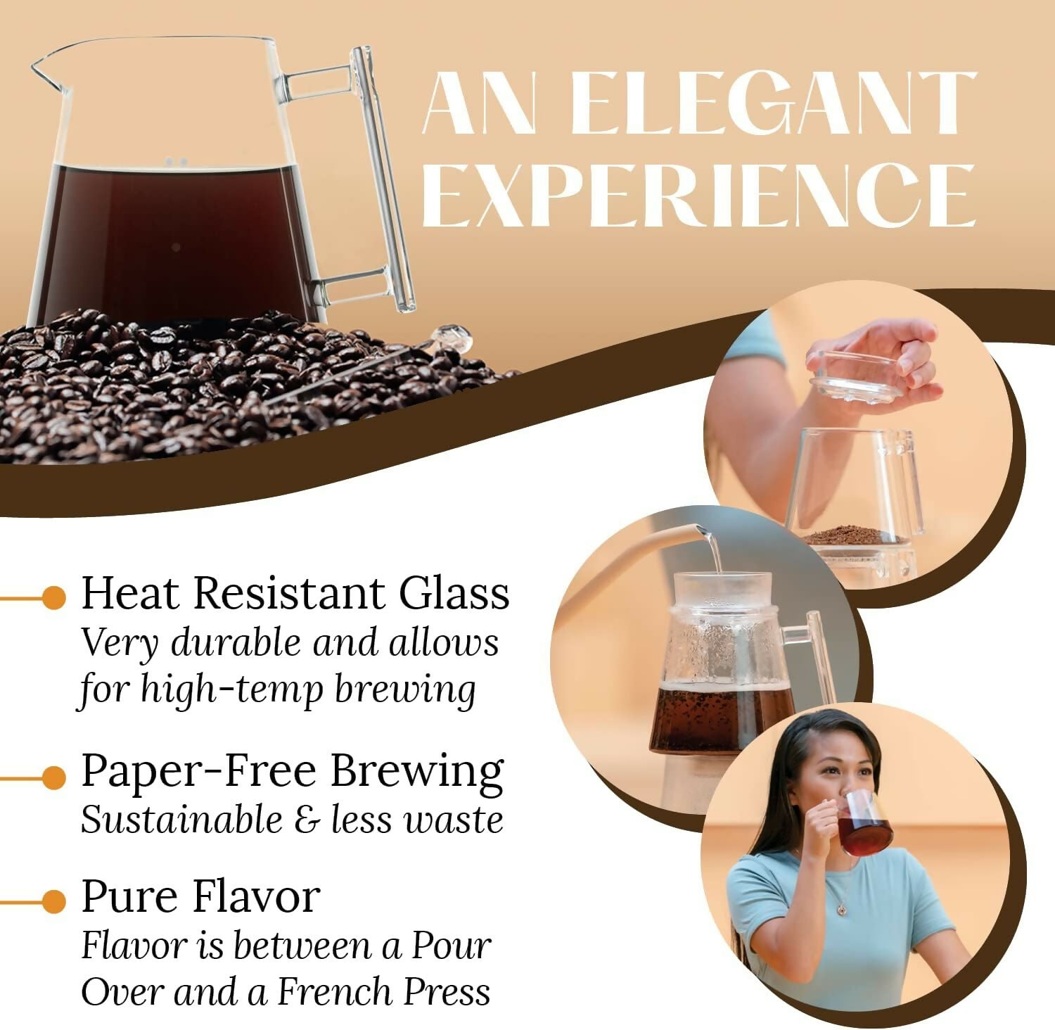 Taste the coffee, not the filter. Pure Over Brew Kit XL - Pour Over Coffee Maker Set relies on the coffee itself to serve as a filter - a method called cake filtration. Because of that, there is nothing to get in the way or affect the taste of your coffee other than the coffee itself.