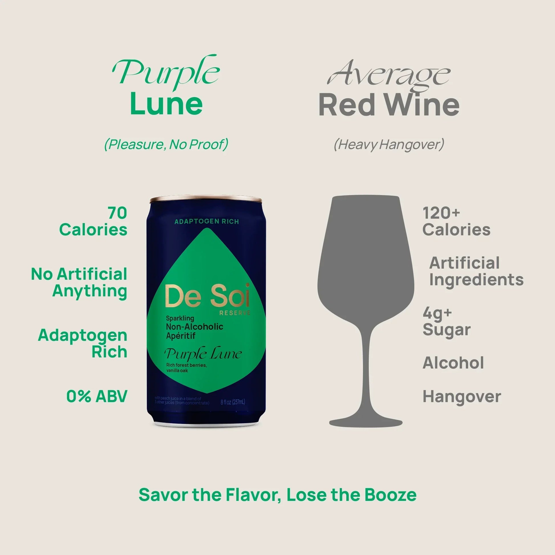 De Soi Purple Lune is made with a mind-mellowing mix of ashwagandha and tart cherry, botanicals that fight fatigue and bring your body into balance. De Soi Purple Lune rich and delicate, the sticky sweetness of peaches and dates layers with the soft touch of rose petals, balsamic vinegar, and black pepper.
