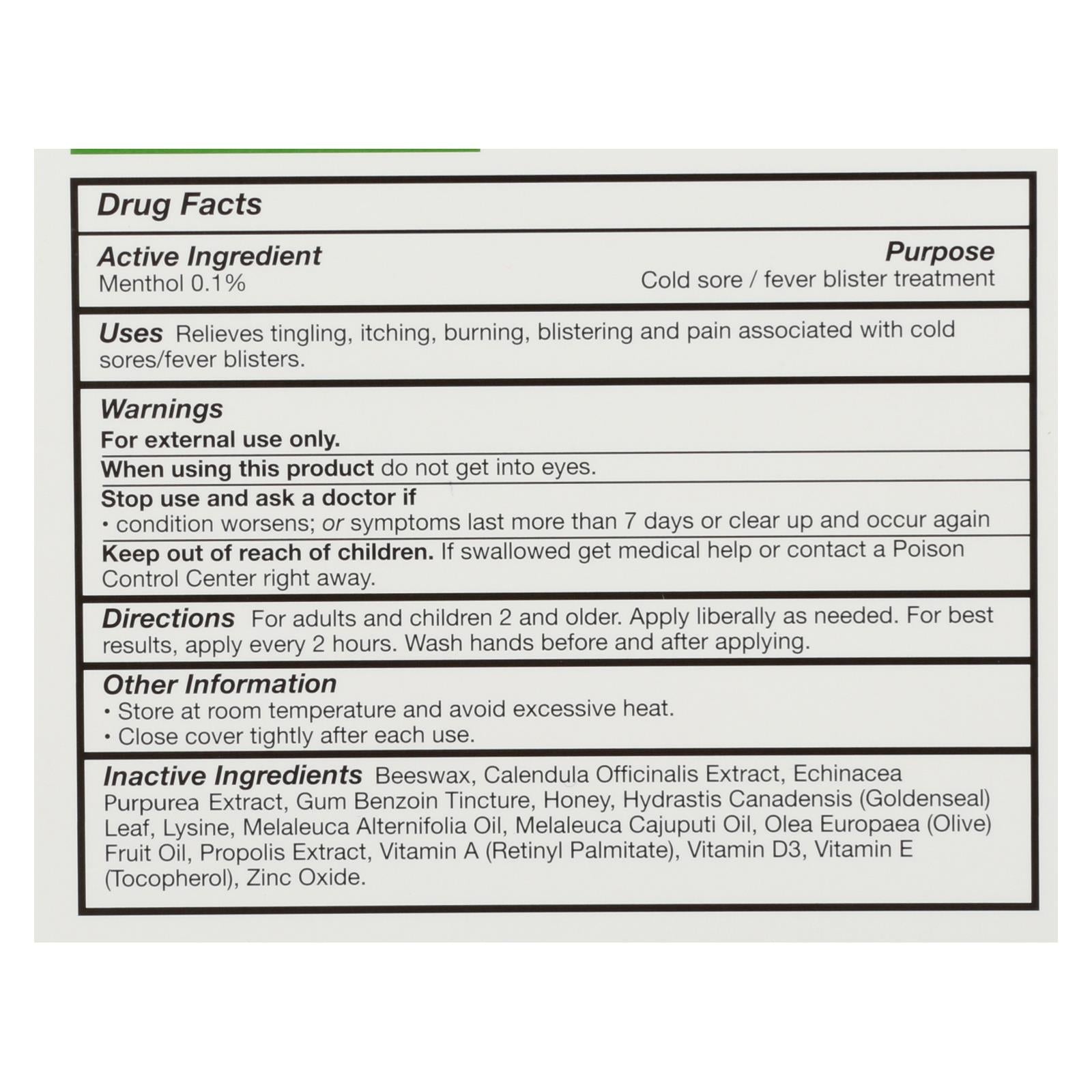 - Effective relief from cold sores and fever blisters