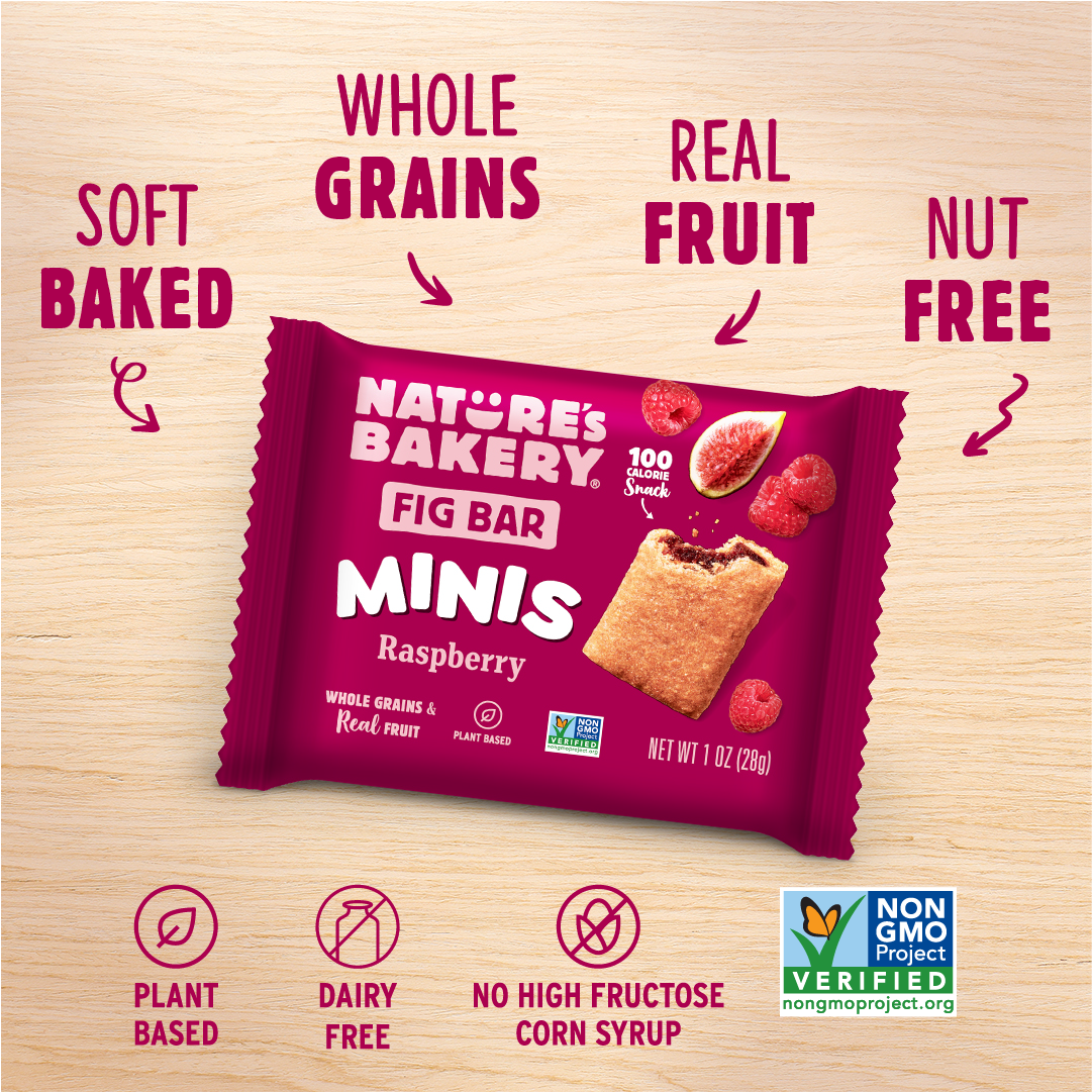 Soft baked snack. 100-calorie pack! Perk up your pantry with perfectly portioned Fig Bar Minis made with real fruit and wholesome whole grains. Plant based, dairy-free, nut-free, and 100% delicious!