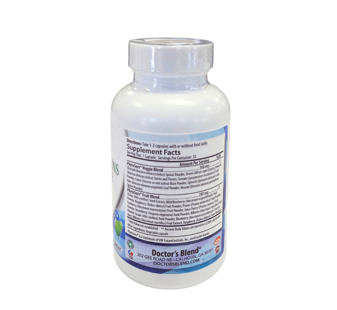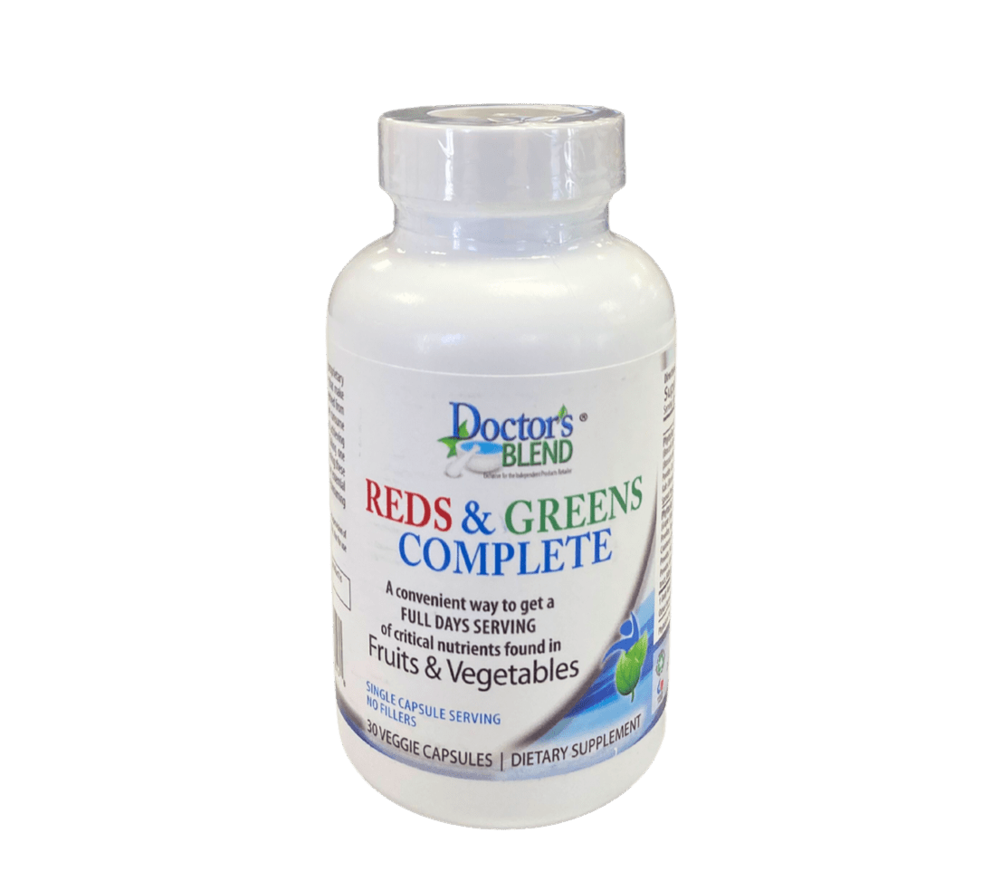 Taking one daily capsule of Doctor's Blend Reds & Greens Complete containing these unique, concentrated extracts will allow you to get the essential phytonutrients in an amount that is normally obtained by consuming five servings of vegetables and four servings of fruits.