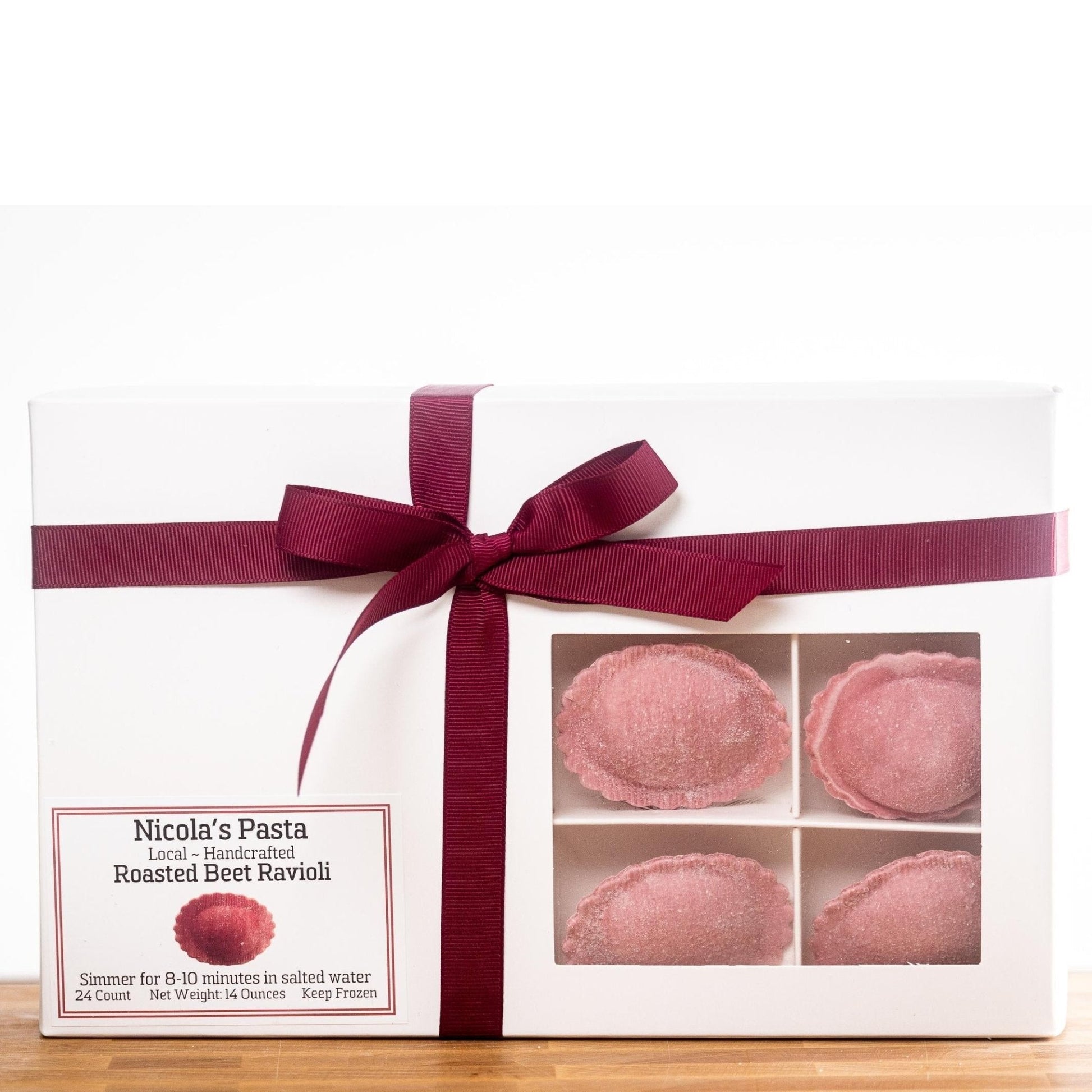 ##0##Satiate your cravings for authentic and classic Italian food with our freshly made, gourmet, and artisanal Roasted Beet Ravioli. We make it from scratch using premium ingredients sourced directly from local farmers and organic unbleached semolina flour imported directly from Italy. It’s made fresh to order and flash-frozen to preserve freshness, without any preservatives. It’s perfect for any time eating or as a gift. It is an absolute favorite of our customers, but everyone who has a fine taste would love this Italian delicacy.