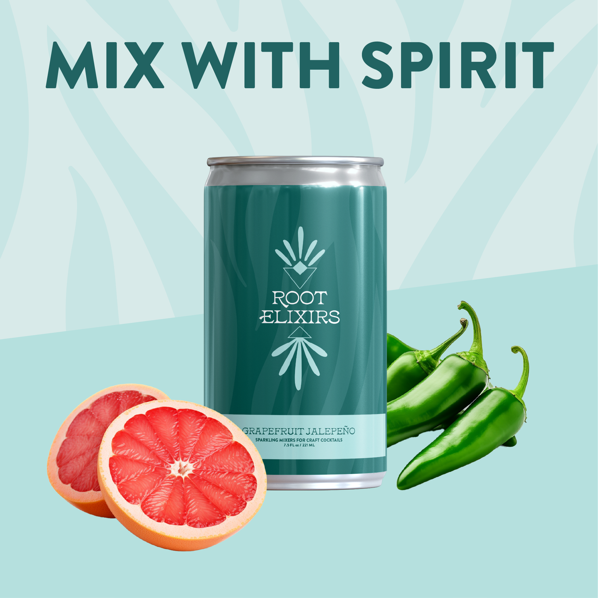Root Elixirs Sparkling Grapefruit Jalapeno Premium Cocktail Mixer - 24 Cans (7.5 oz)