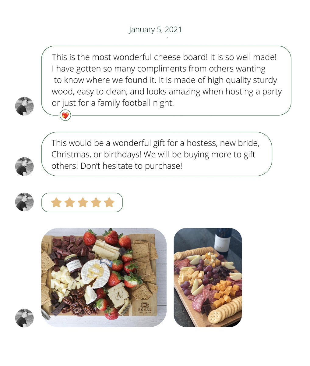 Royal Craft Wood Bamboo Cheese Board 16-10 by Royal Craft Wood wholesale product delivery near me | | Fulfilled by our friends at Royal Craft WoodCore FeaturesThis board for charcuterie features a reversible, two-sided 16” x 10” design so you can make the most of your board;Comes with 2 side serving compartments ideal for smaller snacks like nuts and fruit or to keep your crackers in a straight row;Made of raw bamboo material its 100% sustainable and eco-friendly;Bamboo charcuterie board is both water- & odor-resistant so you don’t have to worry about stains or smells;Simply wash under warm water to clean and wipe dry;Occasional oiling is advised for quality assurance;Free express shipping & up to 30-day return policy on all orders!Description Prepare to create unforgettable moments with your company while enjoying a gorgeous array of delicious cheeses, salami, and wafers! Our bamboo cheese board allows you to dine in luxury while sparing your blades thanks to bam..