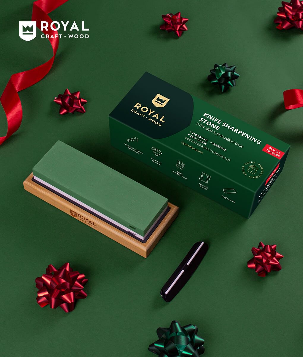 Royal Craft Wood Knife Sharpening Kit by Royal Craft Wood wholesale product delivery near me | | Fulfilled by our friends at Royal Craft WoodCore FeaturesDual function and versatile 1000 & 6000 grit capabilities;Accompanying angle guide & silicone grip holder for stability;Secure, organic bamboo base grip for daily use;Functional, sleek, and elegant finish;The knife sharpening kit is easy to clean & maintain;Up to 30-day returns and free expedited shipping on all orders.DescriptionTHE IDEAL CONFIGURATION: Our dual-function whetstone knife sharpener features a robust bamboo base and accompanying angle guide with each set for honing grip. Grind or hone to enhance your liking and eliminate blemishes and defects on the spot. This set also includes basic instructions and a convenient user handbook with useful insights and advice for users of all skill sets.MULTIFUNCTIONAL KNIFE BLADE SHARPENER: Because of its durability and enduring structure, our high-quality wh..