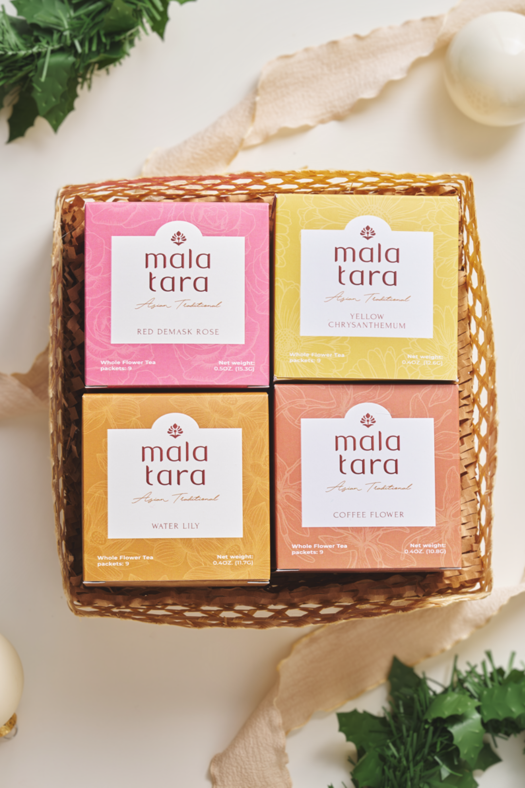 Celebrate the art of whole flower tea with the Signature Floral Collection Gift Box. Featuring four boxes of our organic whole flower teas (choose your favorite flavors), this flower tea gift set is a true showcase of nature’s beauty and wellness. Perfect for tea enthusiasts, gifting, or elevating your daily rituals, it offers a variety of flavors to bring moments of calm and joy to every sip.