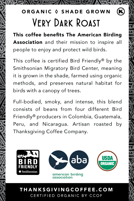 Each package sold benefits the American Birding Association's programs. By drinking shade-grown and bird friendly certified coffee every morning, you are supporting these coffee farmers, the efforts of the ABA, and the countless birds they are protecting through community outreach and conservation. Learn more .