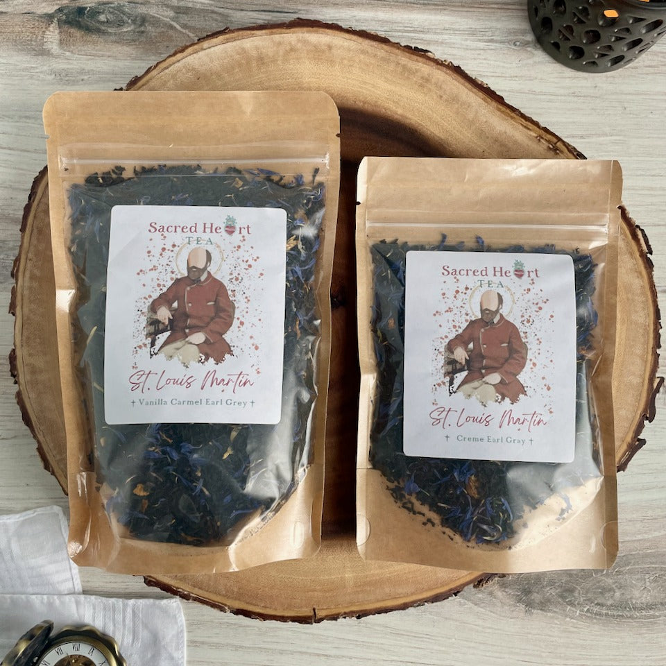 Alongside St. Zélie Martin, we are also welcoming St. Louis Martin to our shop! We are so excited to share this Creme Earl Grey tea with you all. In this tea there is Black Tea, Orange, Blue Cornflowers, Natural Vanilla Flavor, Natural Bergamot Flavor & Natural Creme Flavor.