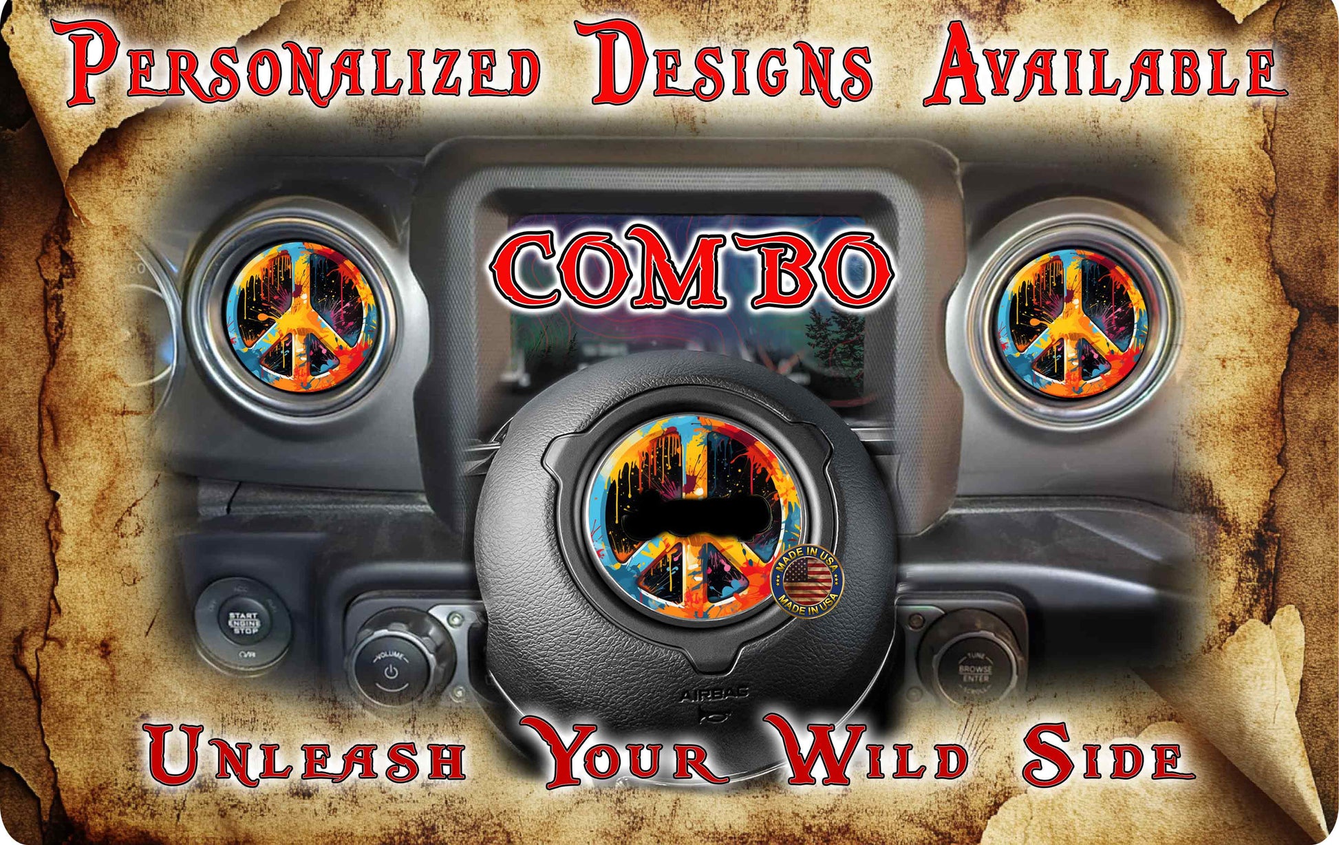 Steering wheel decal Peace sign