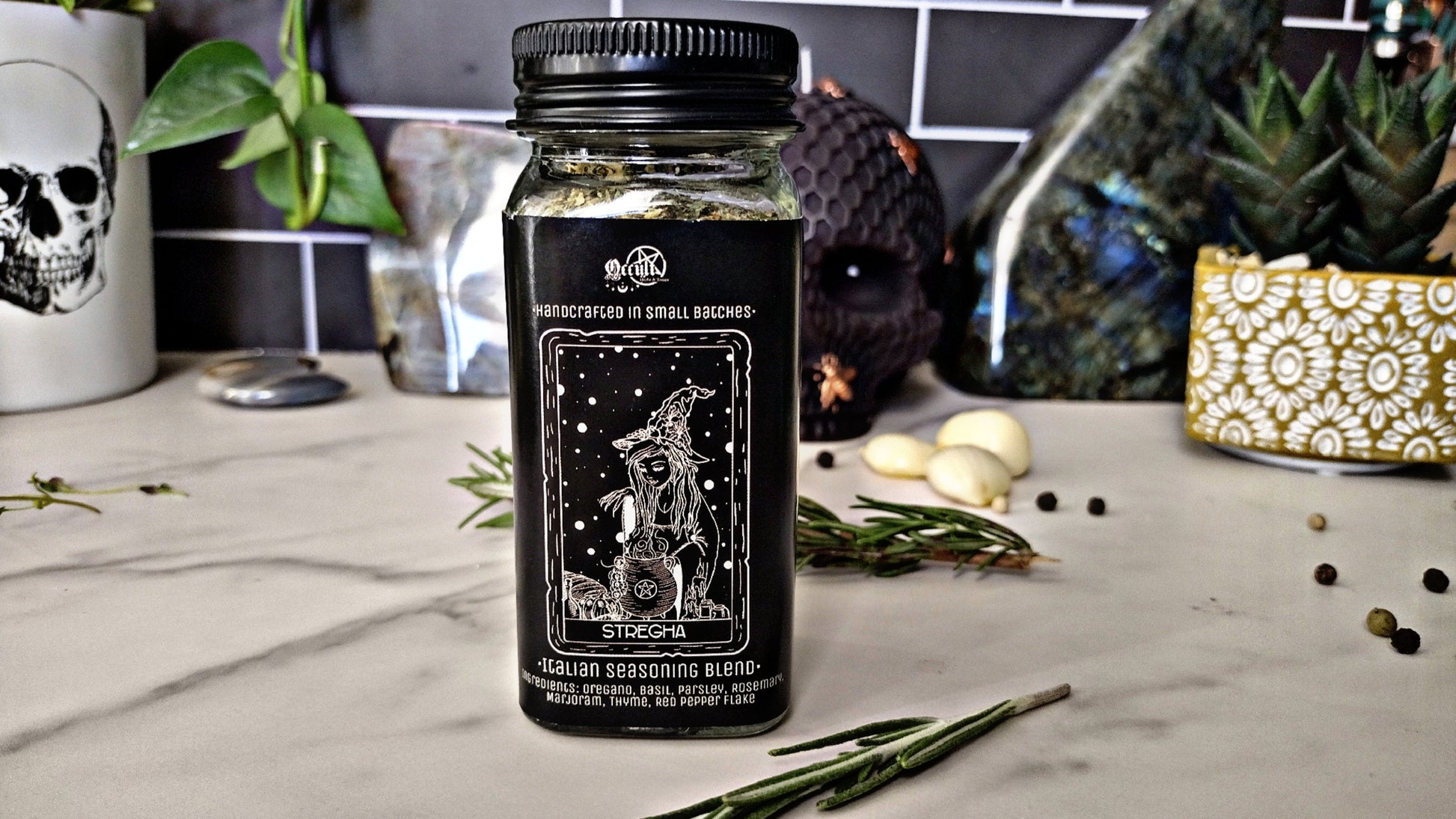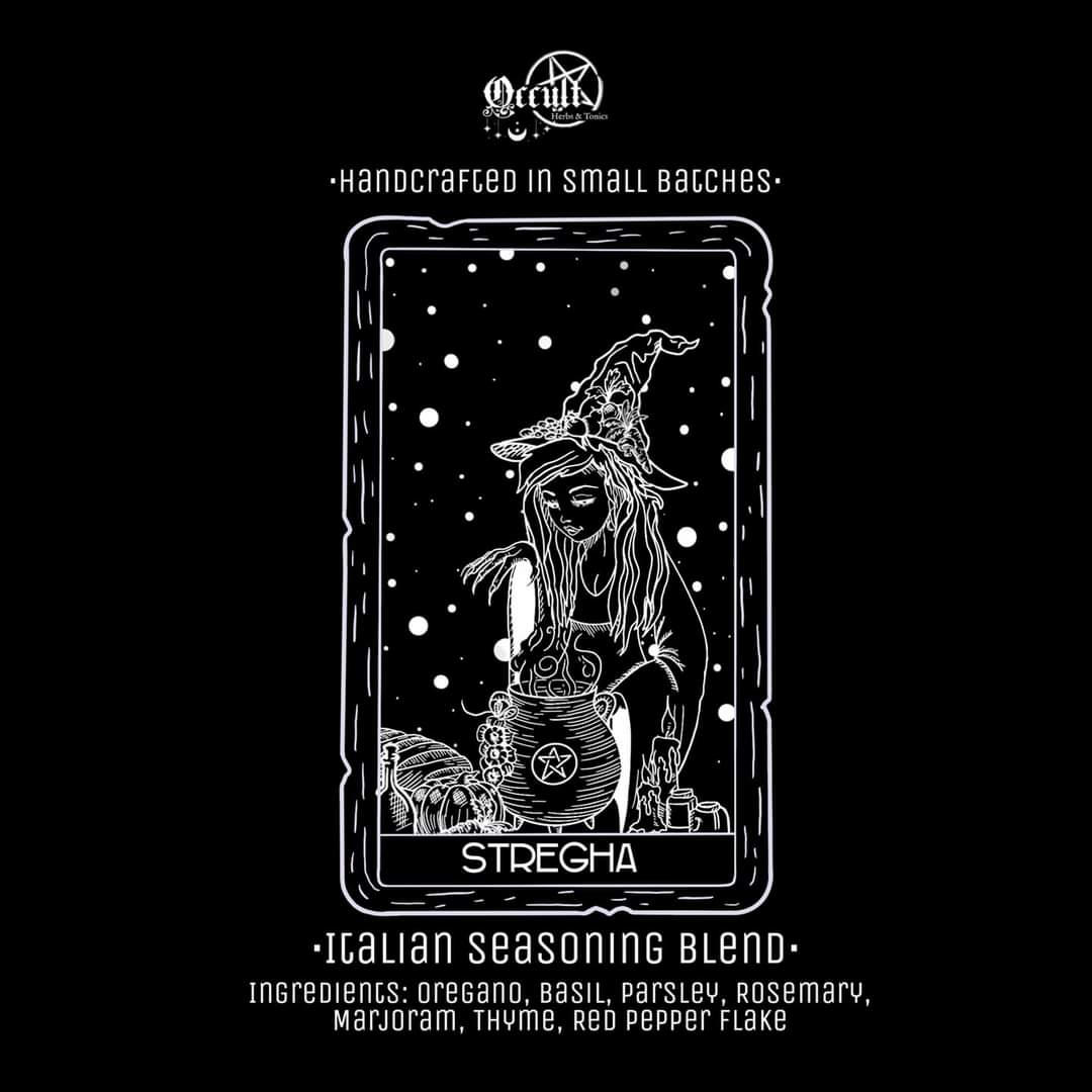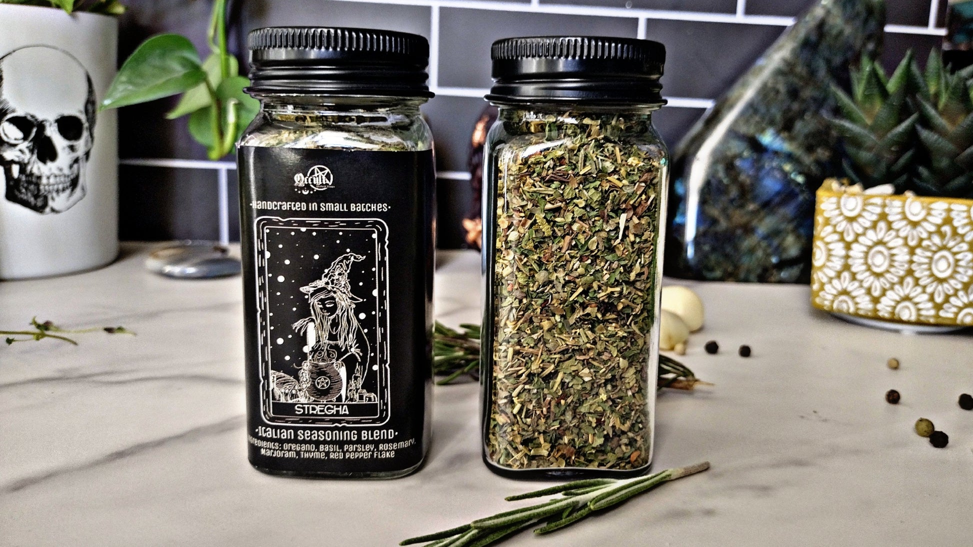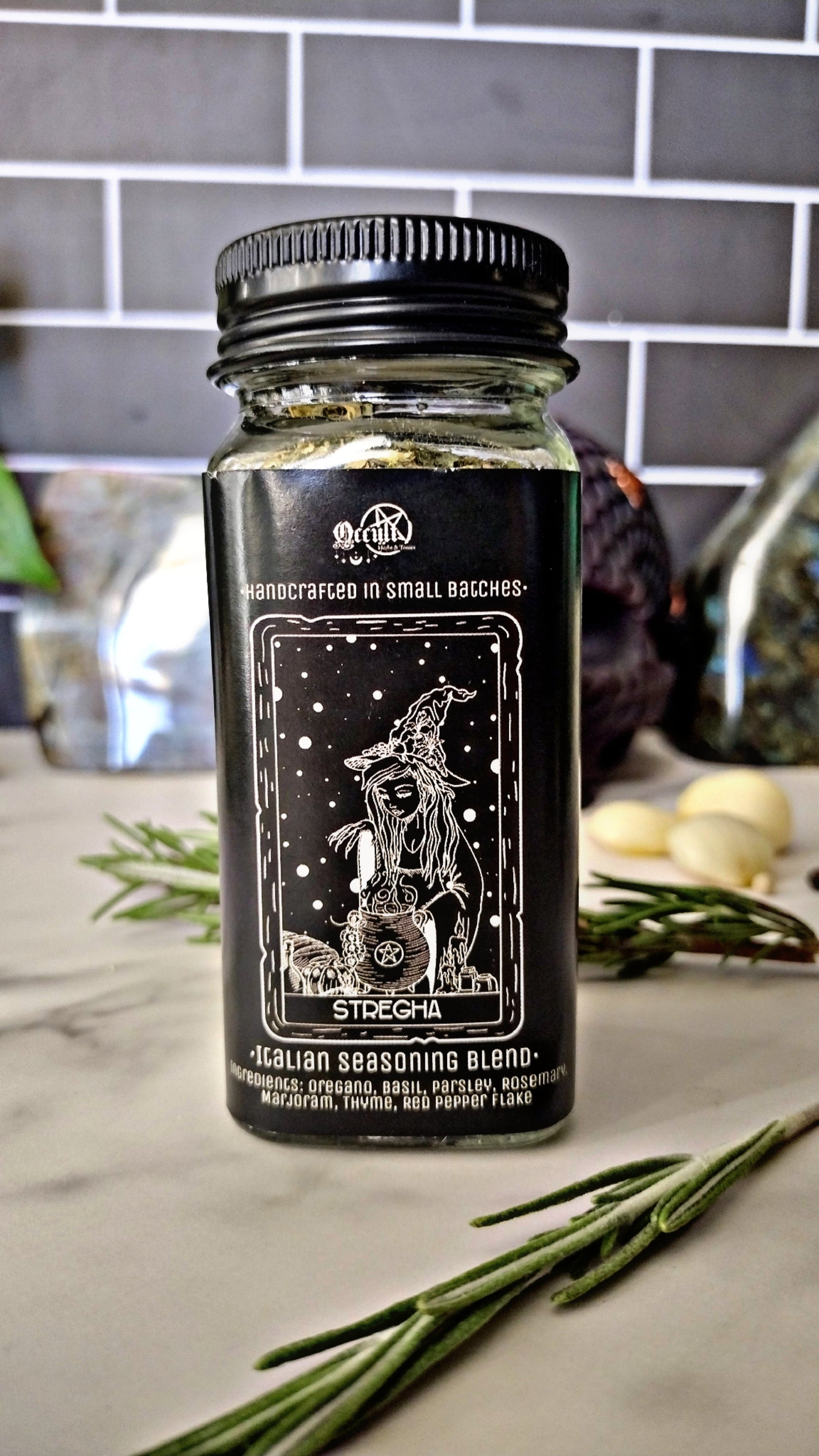 From the hearths of the Old World comes our Stregha signature Italian Blend—an aromatic symphony of oregano, basil, rosemary, marjoram, thyme, and a spark of red pepper. Fragrant, earthy, and timeless, it evokes rustic feasts and slow-simmered magic passed down through generations. Handcrafted in small batches and available in resealable pouches or glass shakers, this blend is the heart of kitchen witchery—simple herbs transformed into everyday enchantment.