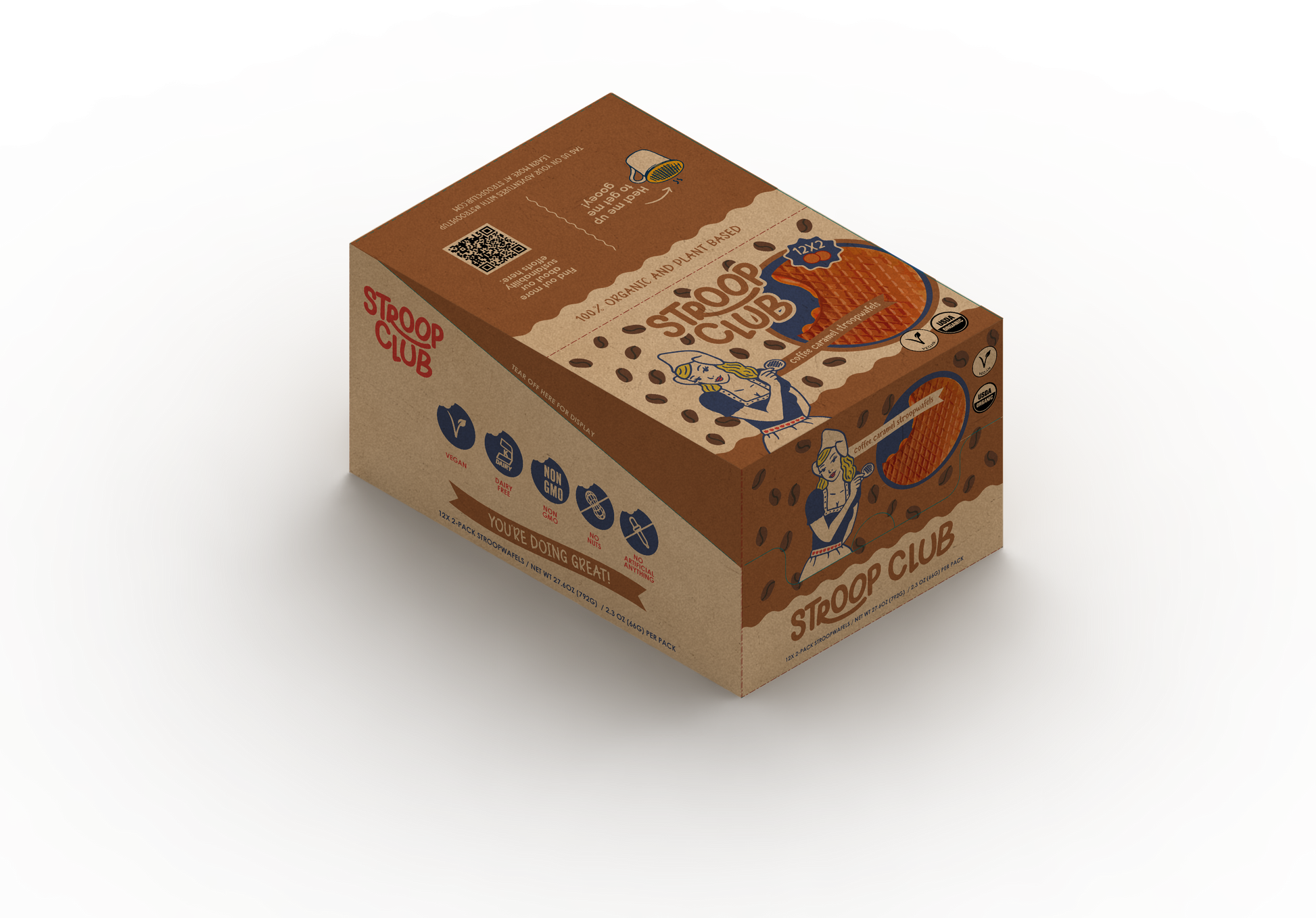 Stroop Club Coffee Caramel Plant Based and Organic Stroopwafels Box - 12 packs x 2-pack case