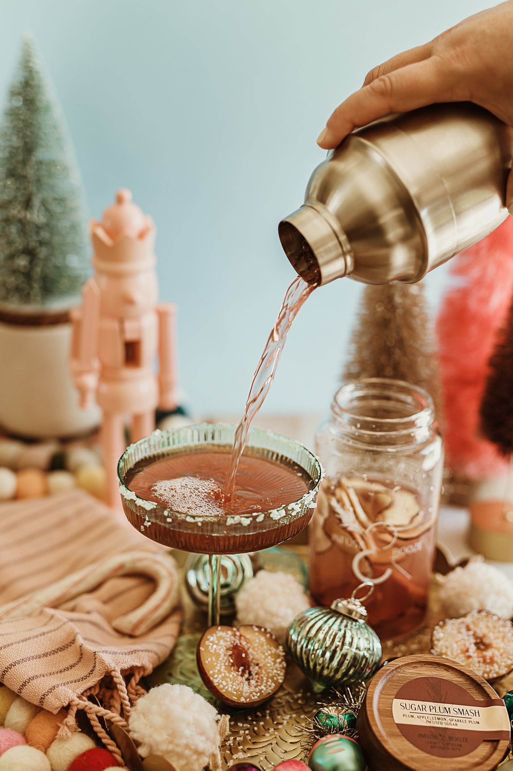 Meet your new favorite holiday cocktail: the Sugar Plum Smash! This deliciously festive drink is made with plums, apples, and just a hint of lemon. But the real star of the show is the glitter-infused sugar...It's the perfect way to add a touch of sparkle and magic to any occasion. Whether you're celebrating with family or friends, this fun and festive cocktail is sure to put everyone in the holiday spirit. So go ahead and make all your fairytale dreams come true with a Sugar Plum Smash. Cheers!