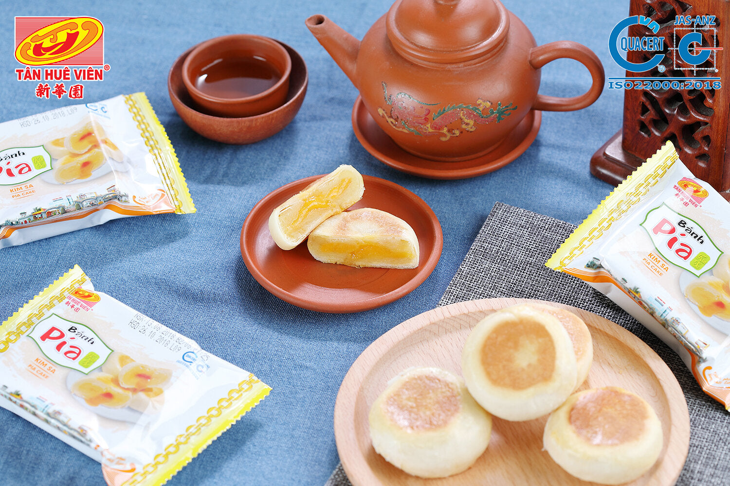 Introducing our Tan Hue Vien Custard Mini Hopia Cake, also known as Mung Bean Custard Cake Mini, the smallest variant in our top-selling Hopia Cake range. This delightful treat features a filling made from mung bean and salted egg, adding a unique twist to the traditional hopia.