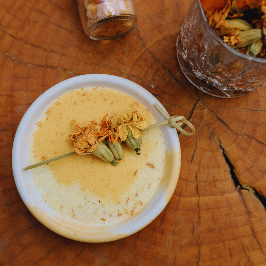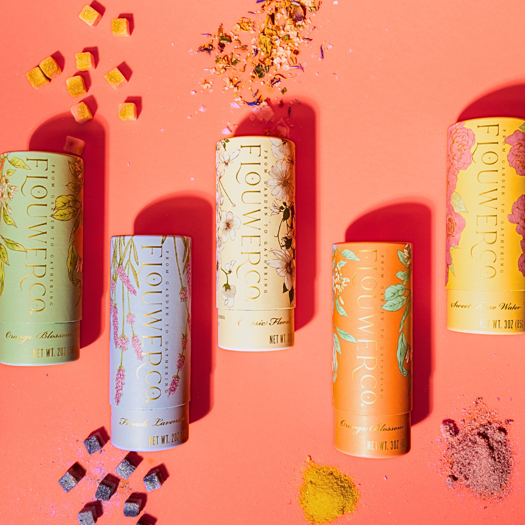 Our Classic Floral Garnishing Salt will pair perfectly with your selection of one of our floral-infused Cocktail Cubes and one flavor of Finishing Sugar.