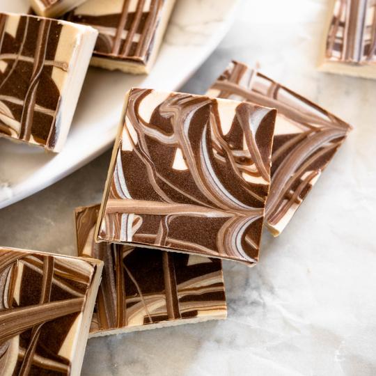Experience the untamed decadence of our Tiger Butter, a symphony of textures and tastes. The elegant dance of dark and white chocolate stripes, seamlessly blended with the velvety richness of peanut butter, makes each piece a visual and culinary masterpiece. Unleash your sweet tooth on this wild and delightful confection.