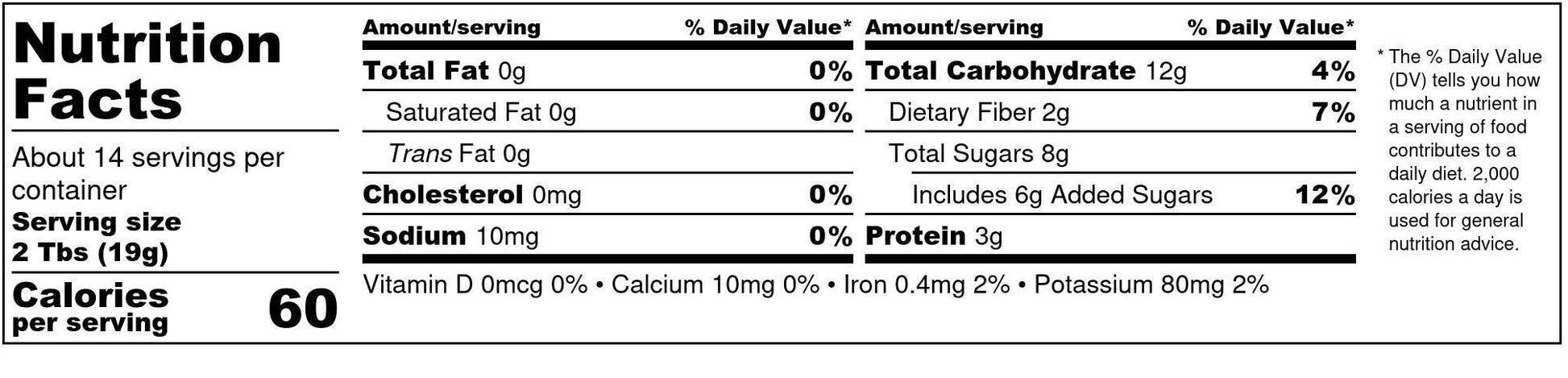 Allergen Statement: Product packed in a facility that also handles nuts, peanuts, soy, sesame, and wheat.