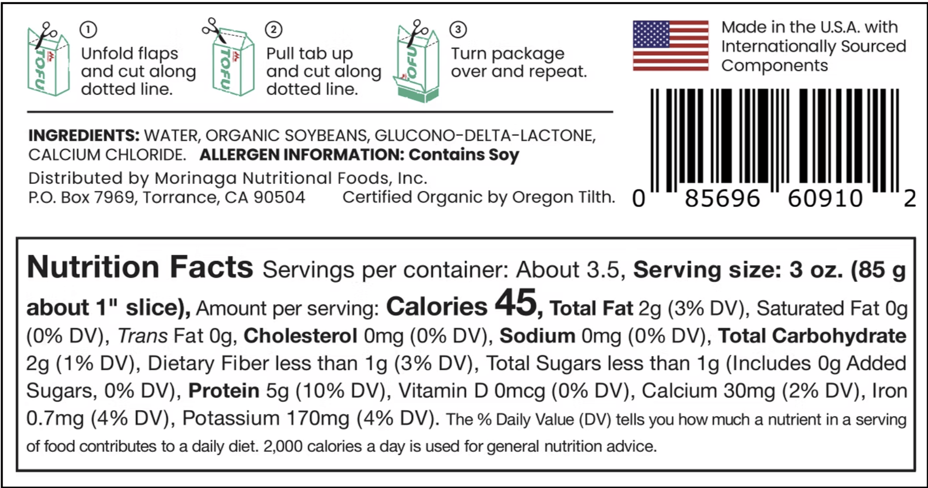 Filtered water, organic soybeans, isolated soy protein, gluconolactone, calcium chloride.