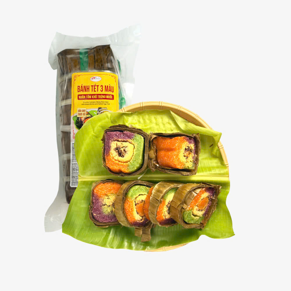 Based on the traditional banh tet with the original filling of mung beans and bananas, the 3-color banh tet created by the people of the South is a combination of the eye-catching colors of sticky rice - symbolizing the rice civilization and the meaning of abundance, fullness with the filling varied with dried shrimp and salted eggs, bringing a unique and attractive culinary experience!