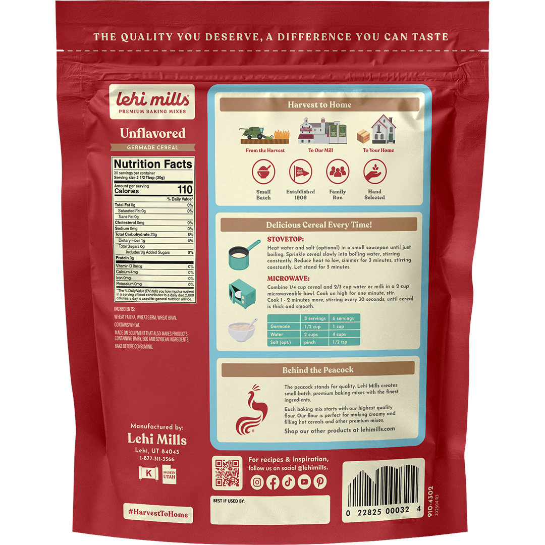 Our Unflavored Germade Cereal is a simple, wholesome breakfast staple made from finely ground wheat for a smooth, creamy texture. Perfectly versatile and naturally satisfying, this classic hot cereal is the ideal base for creating your own customized breakfast experience.