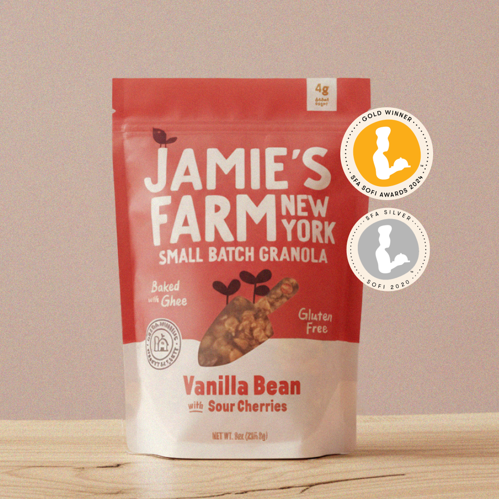 Our award-winning Vanilla Bean Granola tastes like a warm, buttery shortbread cookie — golden clusters baked with real vanilla beans, grass-fed ghee, and tangy sour cherries.