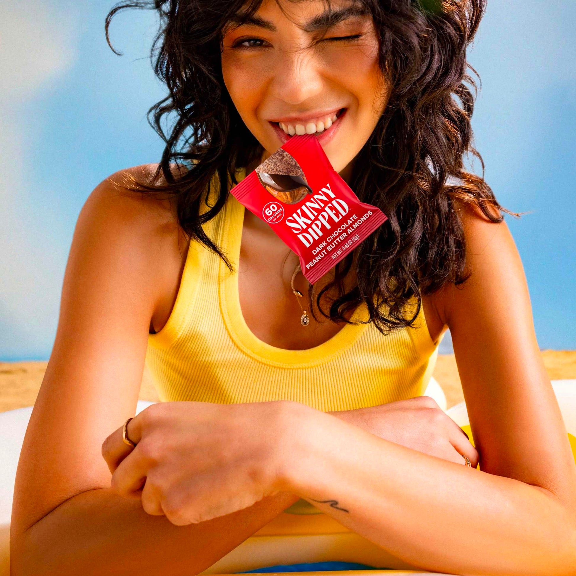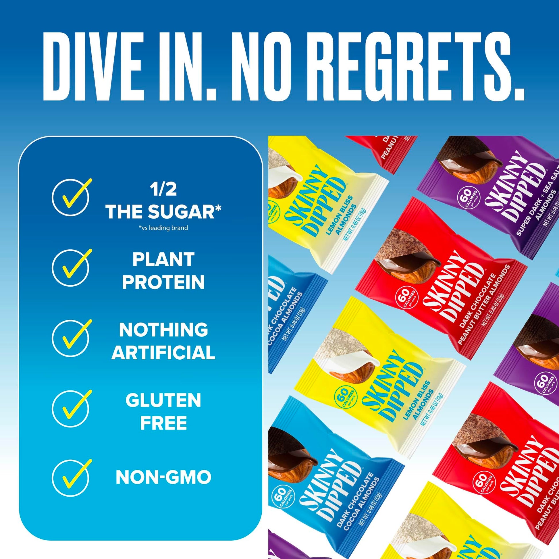 Discover why SkinnyDipped has taken social media by storm! This premium variety pack features an assortment of SkinnyDipped's most popular flavors—lightly sweetened almonds enrobed in real chocolate with 50% less sugar than traditional chocolate-covered nuts. Each mini bag delivers satisfying crunch, plant-based protein, and guilt-free indulgence.
