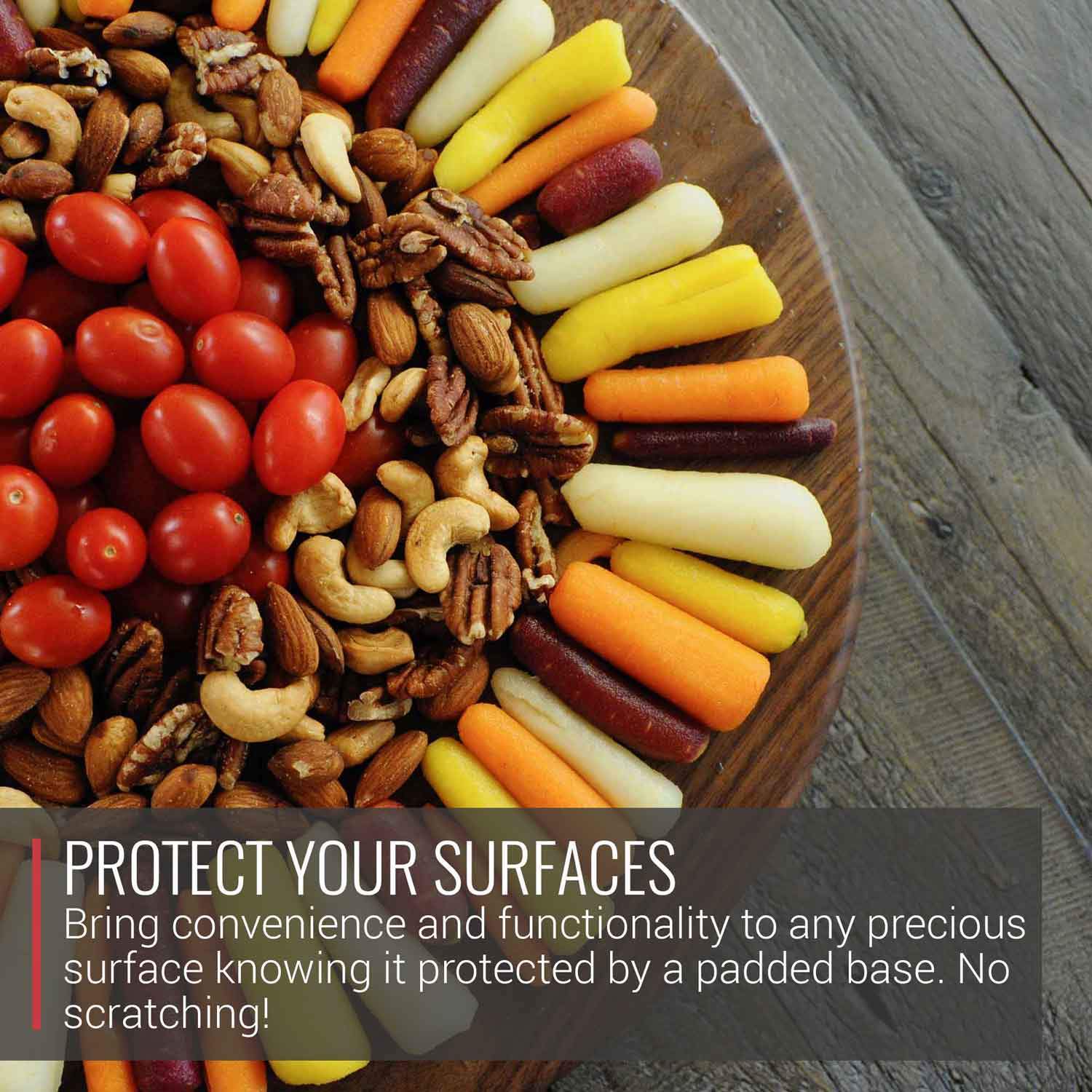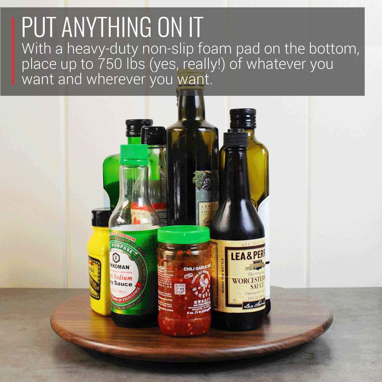 Virginia Boys Kitchens Walnut Wood Lazy Susan Centerpiece by Virginia Boys Kitchens wholesale product delivery near me | | Fulfilled by our friends at Virginia Boys KitchensSet an Exceptional SceneA rustic elegant centerpiece for your tableBuilt with a unique swivel bearing design used in kaleidoscopes and ambulance seating that offers the smoothest 360 degree rotationHolds up to 750 lbs of weight + a non-slip foam pad on the bottom to hold it in place and prevent scuffsThe perfect gift for the holidays, birthdays or anniversaries!Made in the USA with certified sustainably grown walnut wood and corrosion-resistant galvanized steelEvery purchase plants a treeDimensions: 13.5 x 13.5 x 0.75 - Weight: 3 pounds