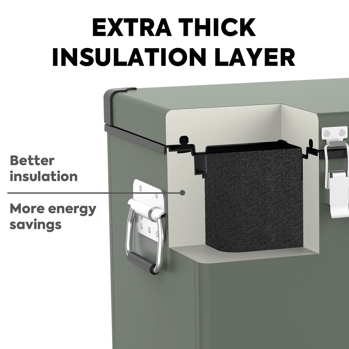 Our VL74 Portable Freezer combines rugged durability with cutting-edge cooling technology. Featuring an impact-resistant shell and shockproof design, it withstands harsh environments with ease. Powered by a high-efficiency SECOP compressor and R134a-CFC refrigerant, it delivers rapid cooling from 0°F to 50°F. Dual power options (12/24V DC and 110-240V AC) make it versatile for both car and home use. The MAX/ECO modes optimize cooling speed and energy efficiency, while the sturdy steel construction and removable basket accommodate tall items. Enhanced with a weatherproof control panel and LED display, the VL74 ensures easy operation and maintenance. Backed by a 5-year compressor warranty and 1-year parts warranty, it’s your reliable solution for portable refrigeration needs.
